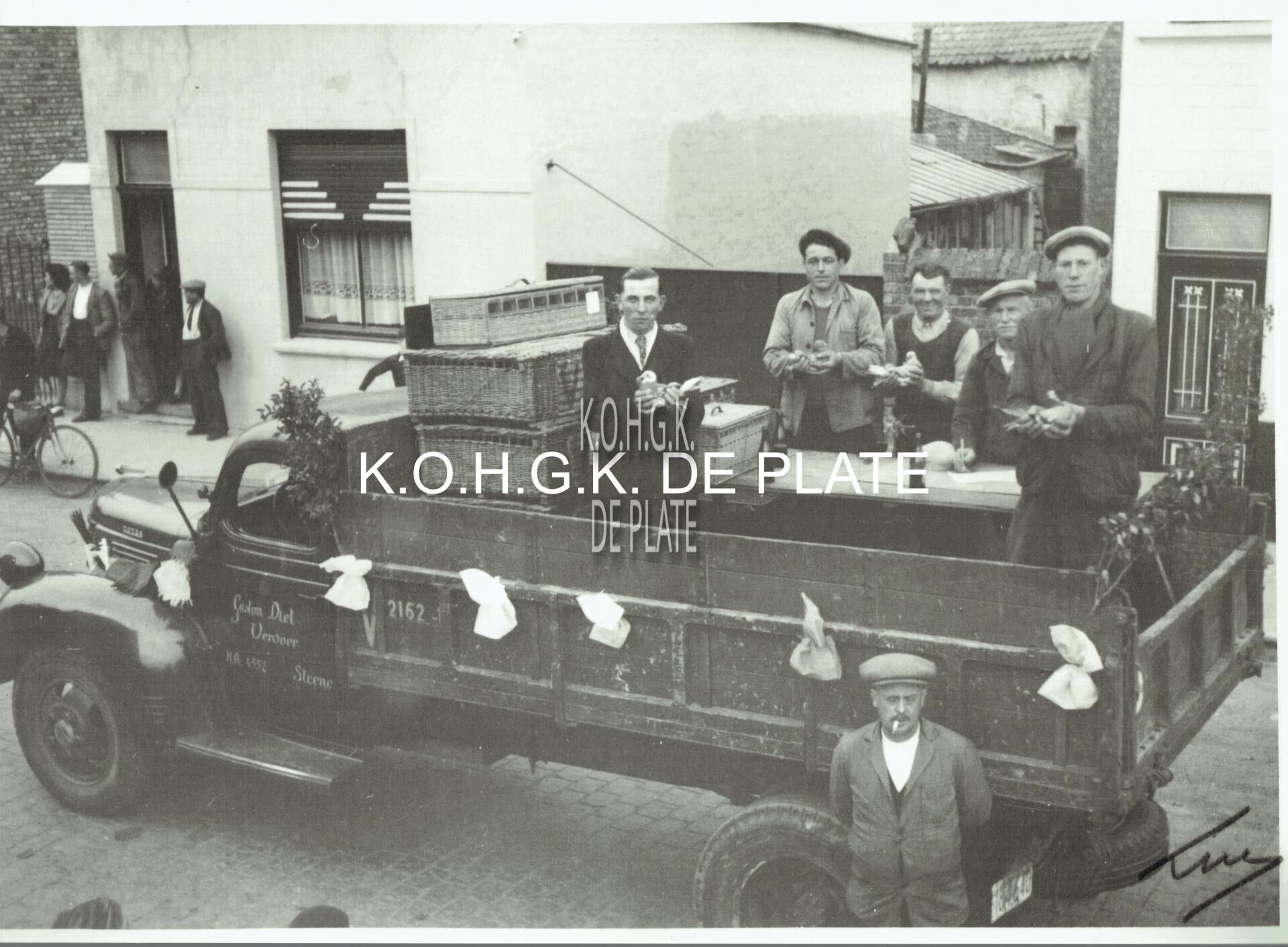 Foto : Nieuwe pastoor van Stene. Steense duivenmelkers in de stoet. 1947