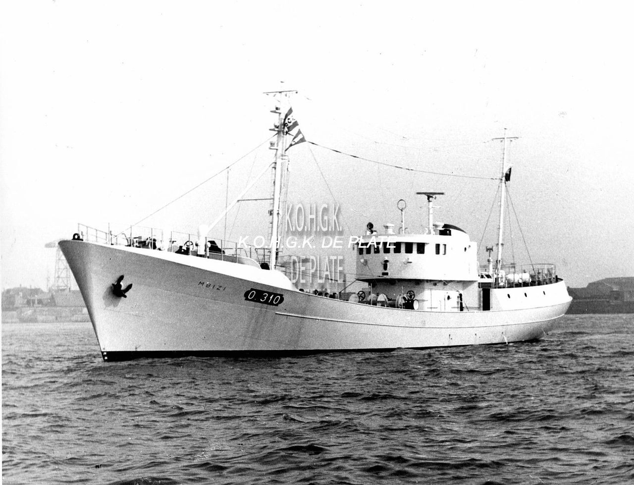 Map 2009/0855-3. - Op de stuurhut is het toestel met cirkel, de draaibare radiopeiler of goniometer. Toestel om de roepletters op te nemen van een radiobaken dat zich bij een lichtschip of bij de haven bevindt.