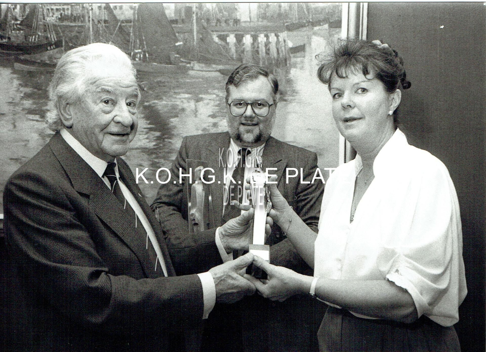 Formaat : 13 x 18 cm. - De vriendenkring van Octaaf Defoor vzw, hebben als trofee van de wedstrijd tussen de Oostendse toneelamateurgroepen een beeld ontworpen met de naam "OCTAAF"