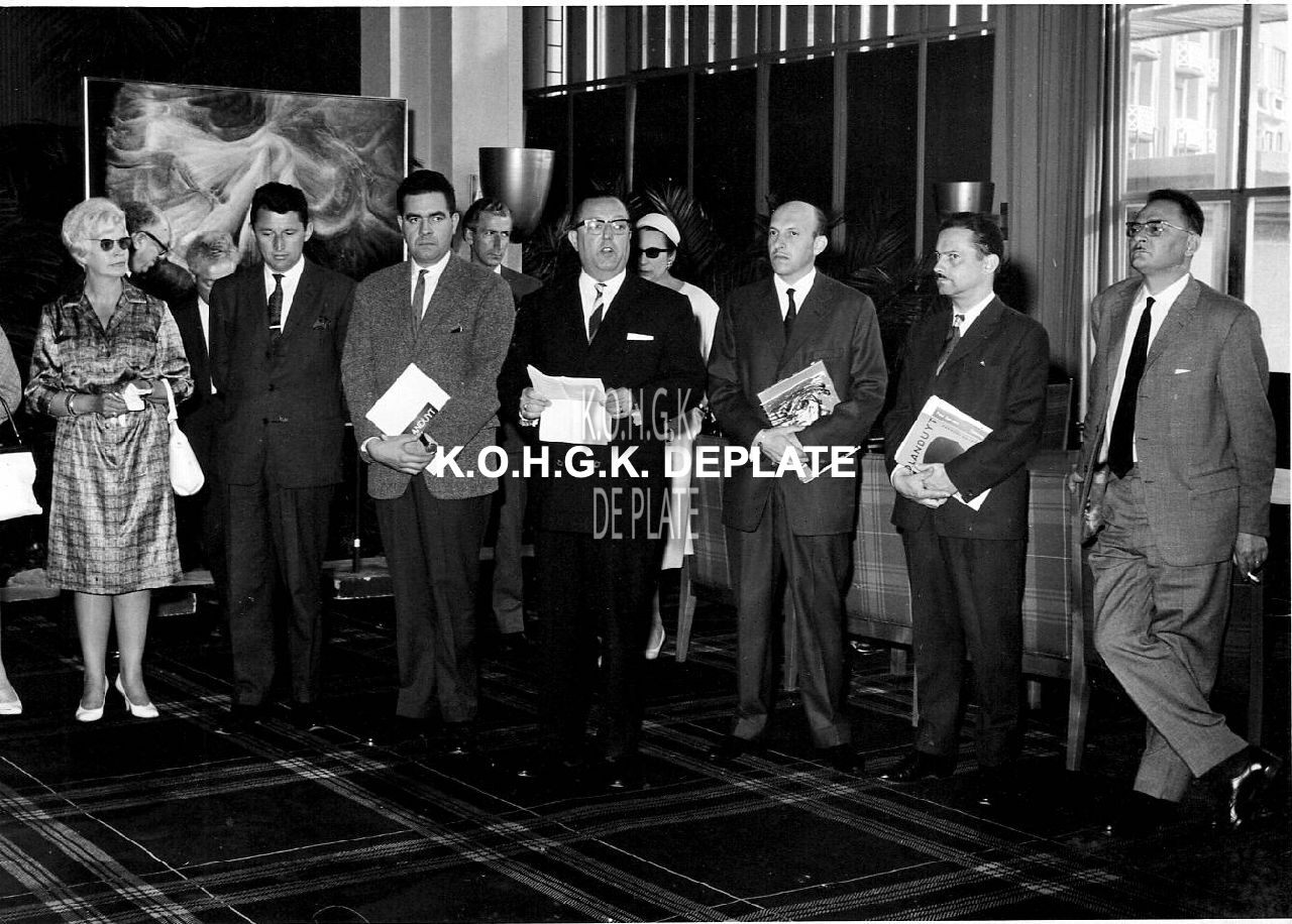 Formaat : 13 x 18 cm. - De vernissage op 28/06/1962. Ingeleid door schepen John Lauwereins. Naast de schepen, rechts, de kunstenaar en uiterst rechts Frank Edebau, conservator van het Museum voor Schone Kunsten. Naast de mevrouw met de donkere bril, gemeenteraadslid Marcel Friedrichs.