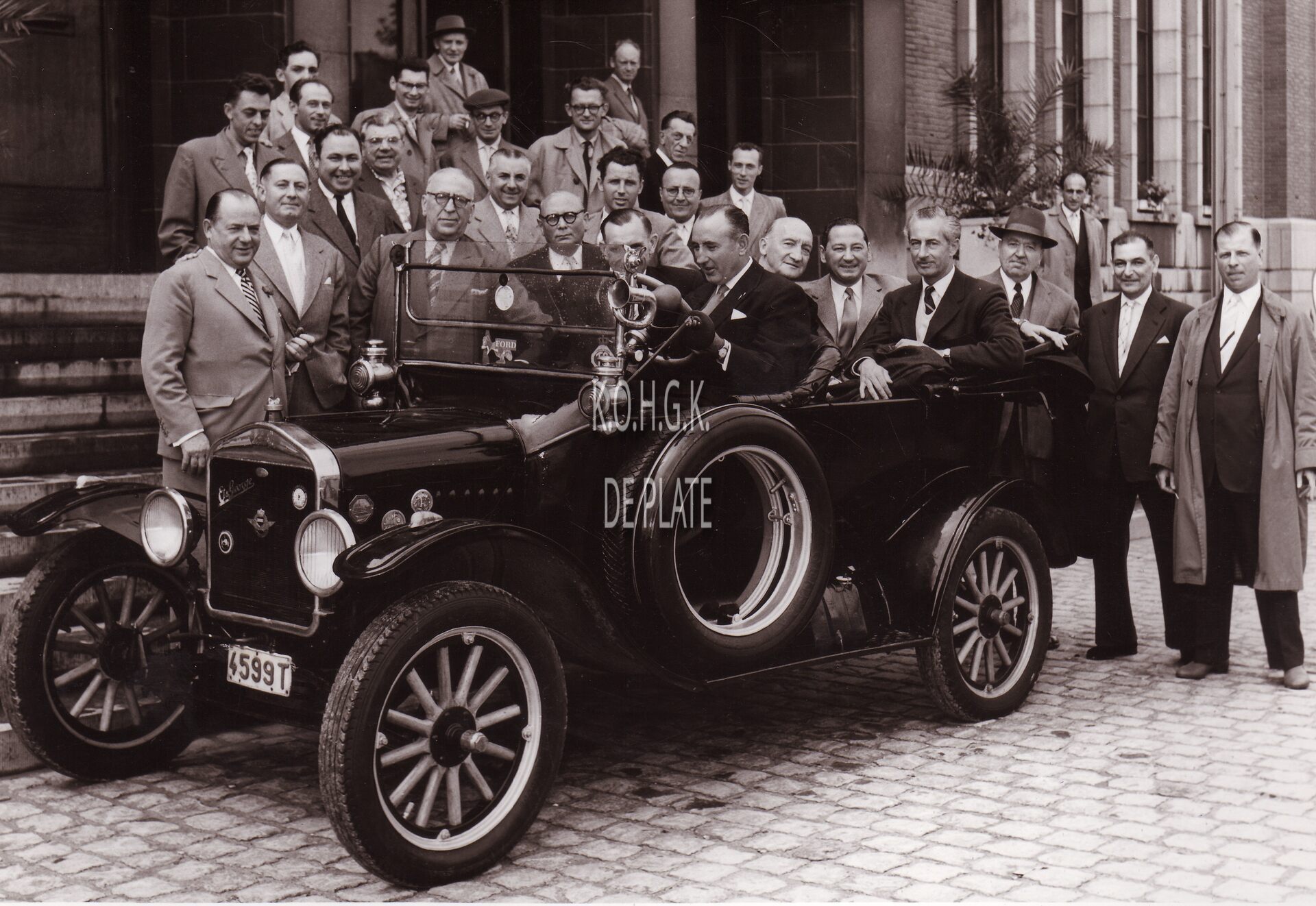 Formaat : 13 x 18 cm. - Ter gelegenheid van de Koers der Gentlemen ten voordele van het Koninklijk Werk Ibis had op het stadhuis een receptie plaats en kon men achteraf Sylveer Maes achter het stuur van een oldtimer zien