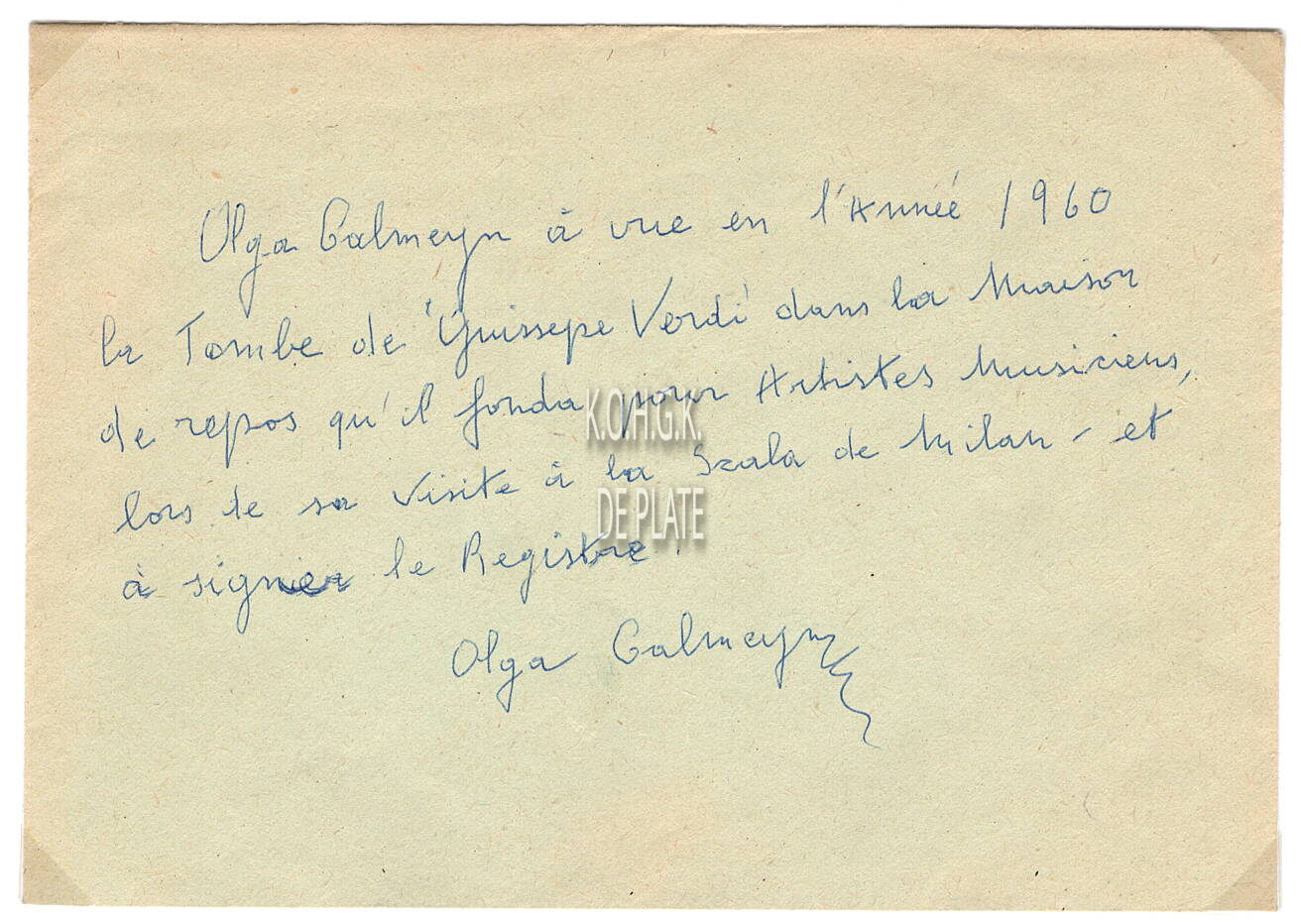 Omschrijving Formaat : 12,5 x 9 cm. - Met bijgevoegde tekst. Trefwoorden FOTO'S CALMEYN OLGA (1902-1997) (OPERAZANGERES) Plaatskenmerk MUSEUMDEPOT 117.7 A15 D2 Inventarisnummers 2011/0292 Collectie Grote archieven Print