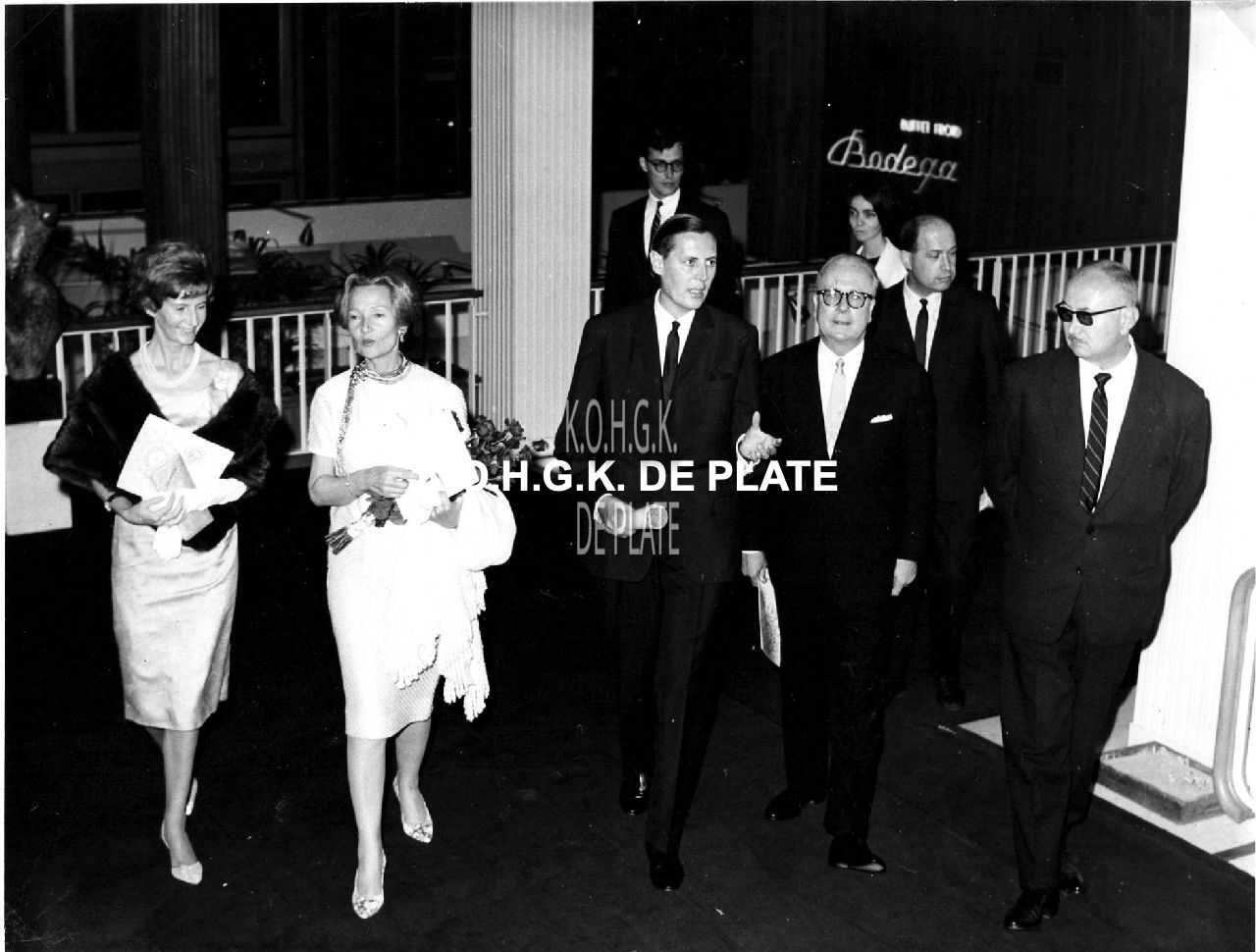 Formaat : 18 x 24 cm. - Zijn woonden het optreden bij van The Paul Taylor Dance Company. Van links naar rechts : De echtgenote van de burgemeester, de echtgenote van de ambassadeur, burgemeester Jan Piers, de ambassadeur en Roger De Ramée, directeur van de Kursaal.