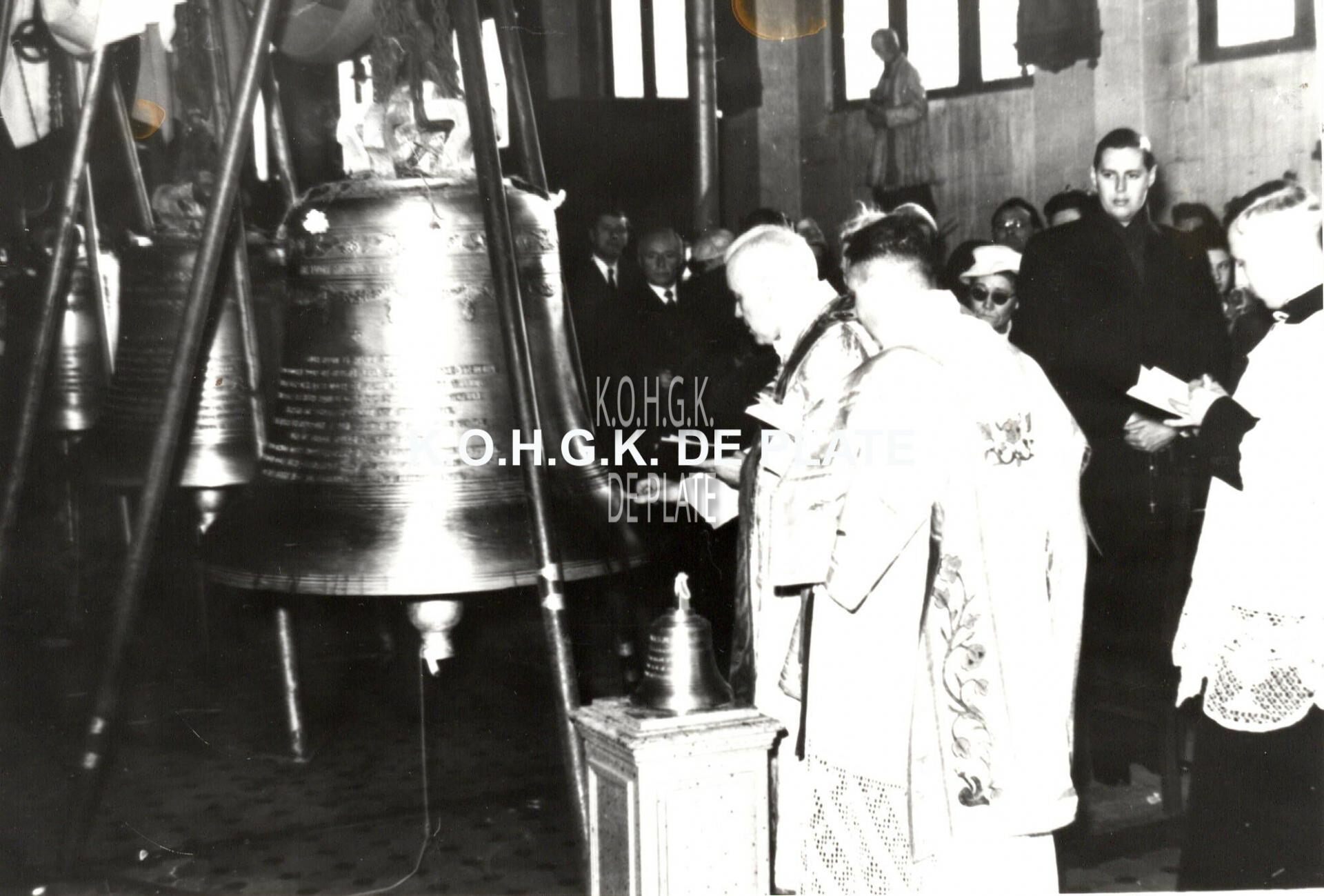 Formaat : 13 x 18 cm. - De kerk werd gebouwd tussen 1956 en 1959 naar de plannen van architect Sylvain Smis onder het pastoraat van Georges Borre. Pseudo-gotische kerk onder één zadeldak, met uitspringend westportaal, een klein transept en uitgebouwd koor, met de toren op het zuidwesten. Tijdens een plechtigheid in de noodkerk (Nieuwpoortsesteenweg) werd door Deken Butaye overgegaan tot de wijding van de klokken.