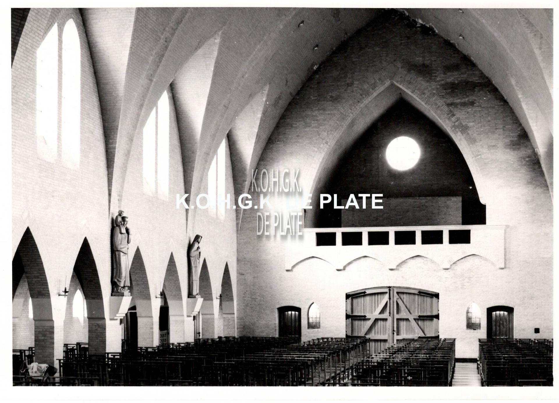 Formaat : 13 x 18 cm. - De kerk werd gebouw tussen 1956 en 1959 naar de plannen van architect Sylvain Smis onder het pastoraat van Georges Borre. Pseudo-gotische kerk onder één zadeldak, met uitspringend westportaal, een klein transept en uitgebouwd koor, met de toren op het zuidwesten.