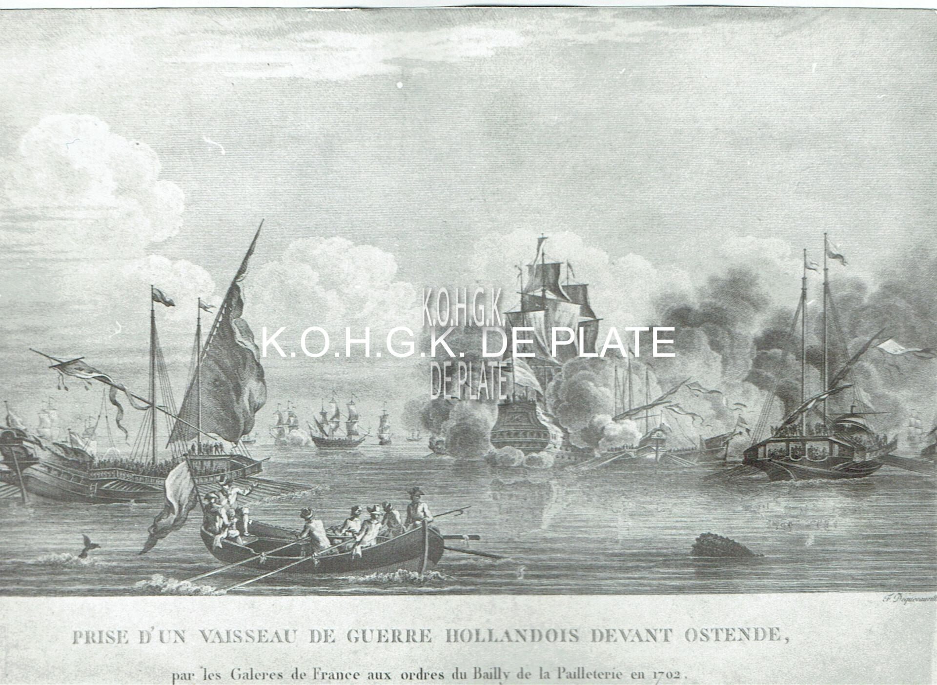 Afdruk van schilderij. - Formaat : 13 x 18 cm. - "Prise d'un vaisseau de guerre hollandois devant Ostende".