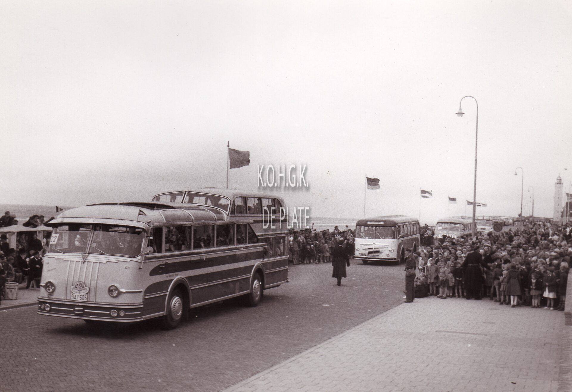 Formaat : 13 x 18 cm. - Een karavaan autocars op de Zeedijk van het Nederlandse Noordwijk.