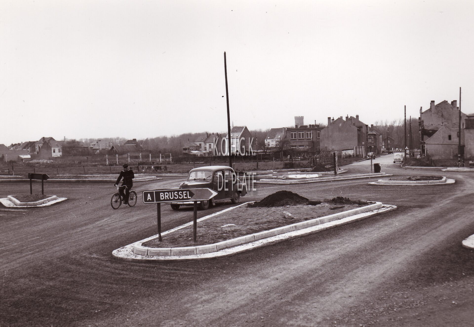 Formaat : 13 x 18 cm. - Het kruispunt Gistelsesteenweg en Elisabethlaan nabij bij de Kennedyrotonde kort na de opening van de autostrade.
