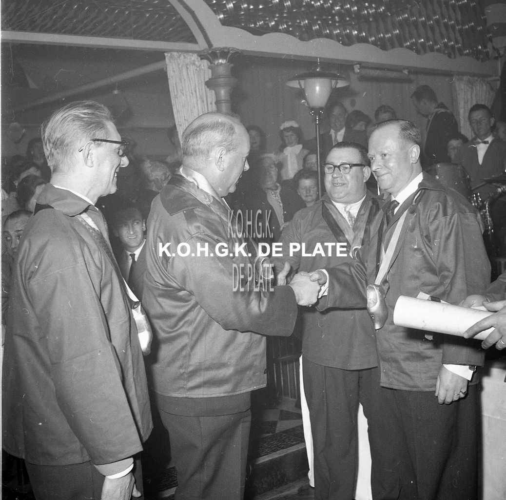 Negatief : 6 x 5,5 cm. - Schepen Kamiel Dehouck wordt gelukgewenst als nieuw lid van de "Orde van de Kloeffe". Dit gebeurde op het 1e groot Kloeffebal in dancing Carnegie