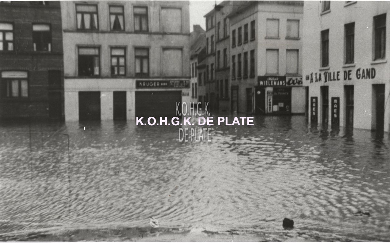 Formaat : 14,5 x 23,5 cm. - We zien wat de Oostendenaars het Pauluspleintje noemen. Rechtdoor, de Sint-Paulusstraat, met op de hoek van de Sint-Franciscusstraat, café "A la Ville de Gand", nadien café "Stad Gent".