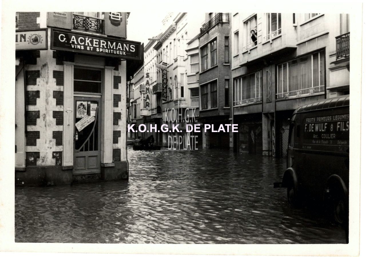 Formaat : 7,5 x 10,5 cm. - De Kapellestraat, met op de hoek van de Jozef II-straat, de wijn en likeurenhandel G. Ackermans