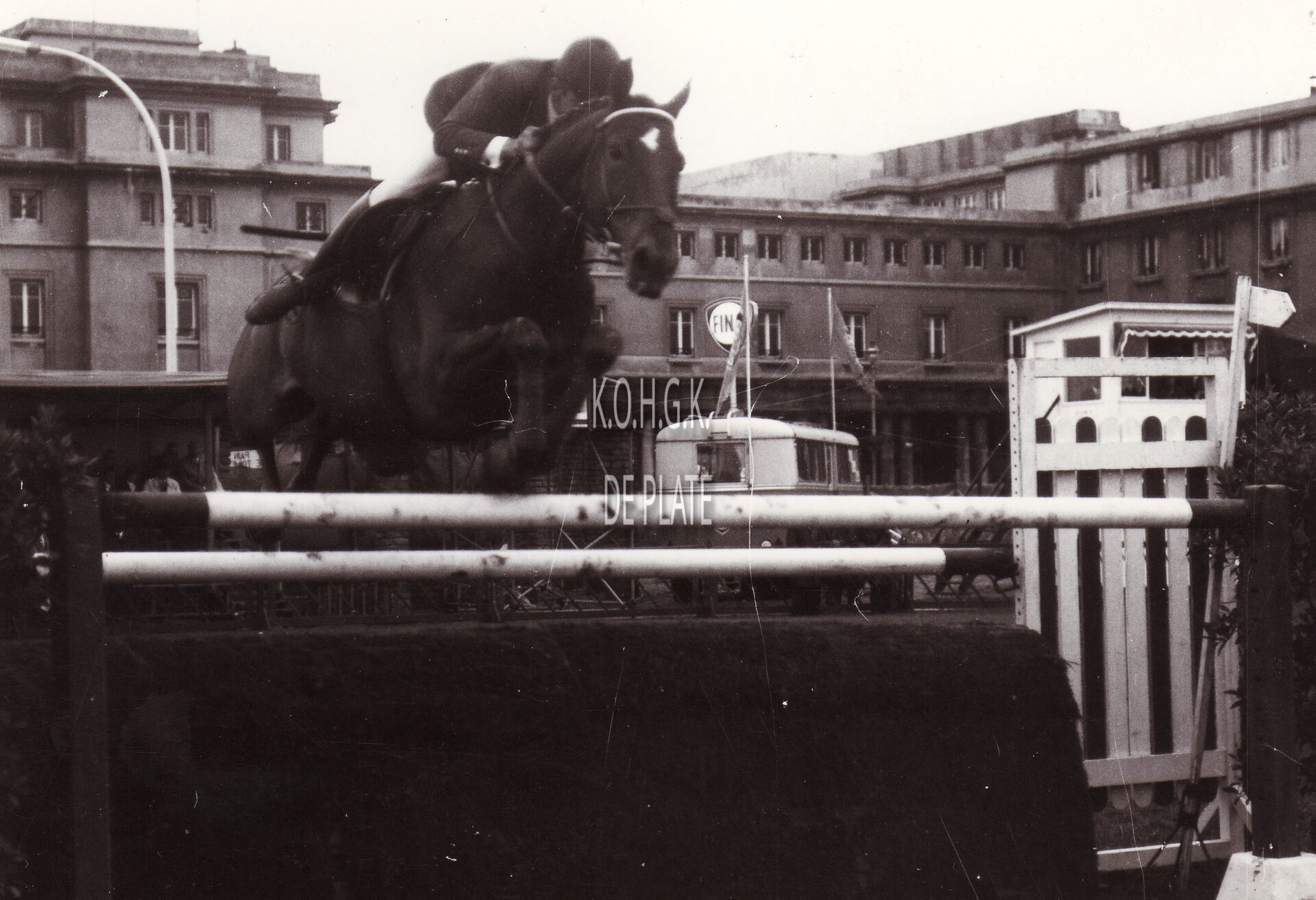 Formaat : 13 x 18 cm. - Ruiter Fritz Ligges en paard nemen deel aan de jumpingwedstrijd