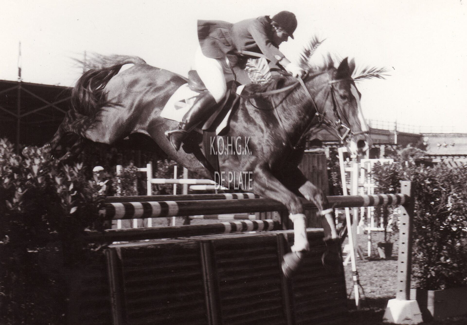 Formaat : 13 x 18 cm. - Ruiter THIRY en paard nemen deel aan de jumpingwedstrijd