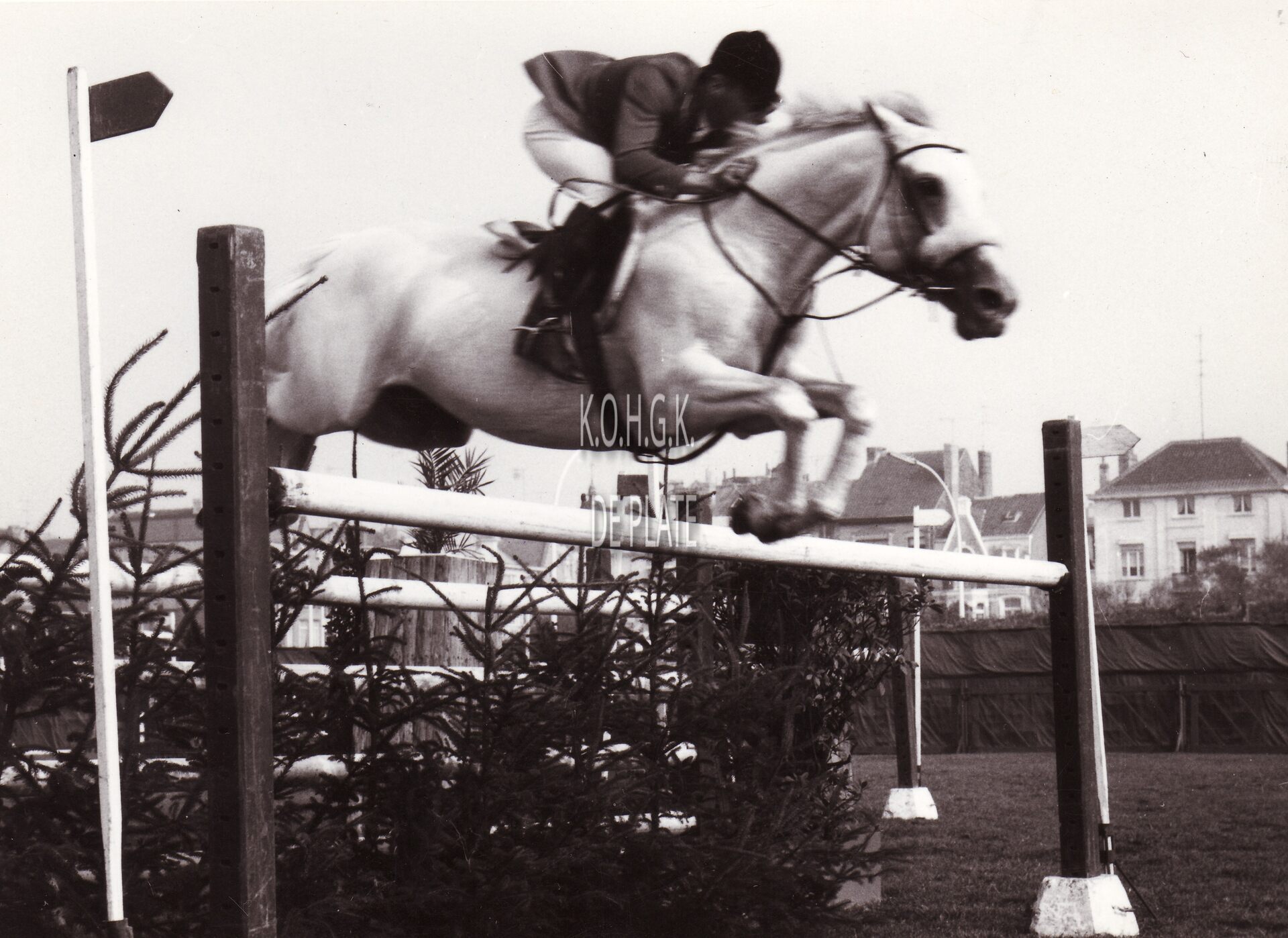 Formaat : 13 x 18 cm. - Ruiter M. F. D. Chapot met Good Twist nemen deel aan de jumpingwedstrijd