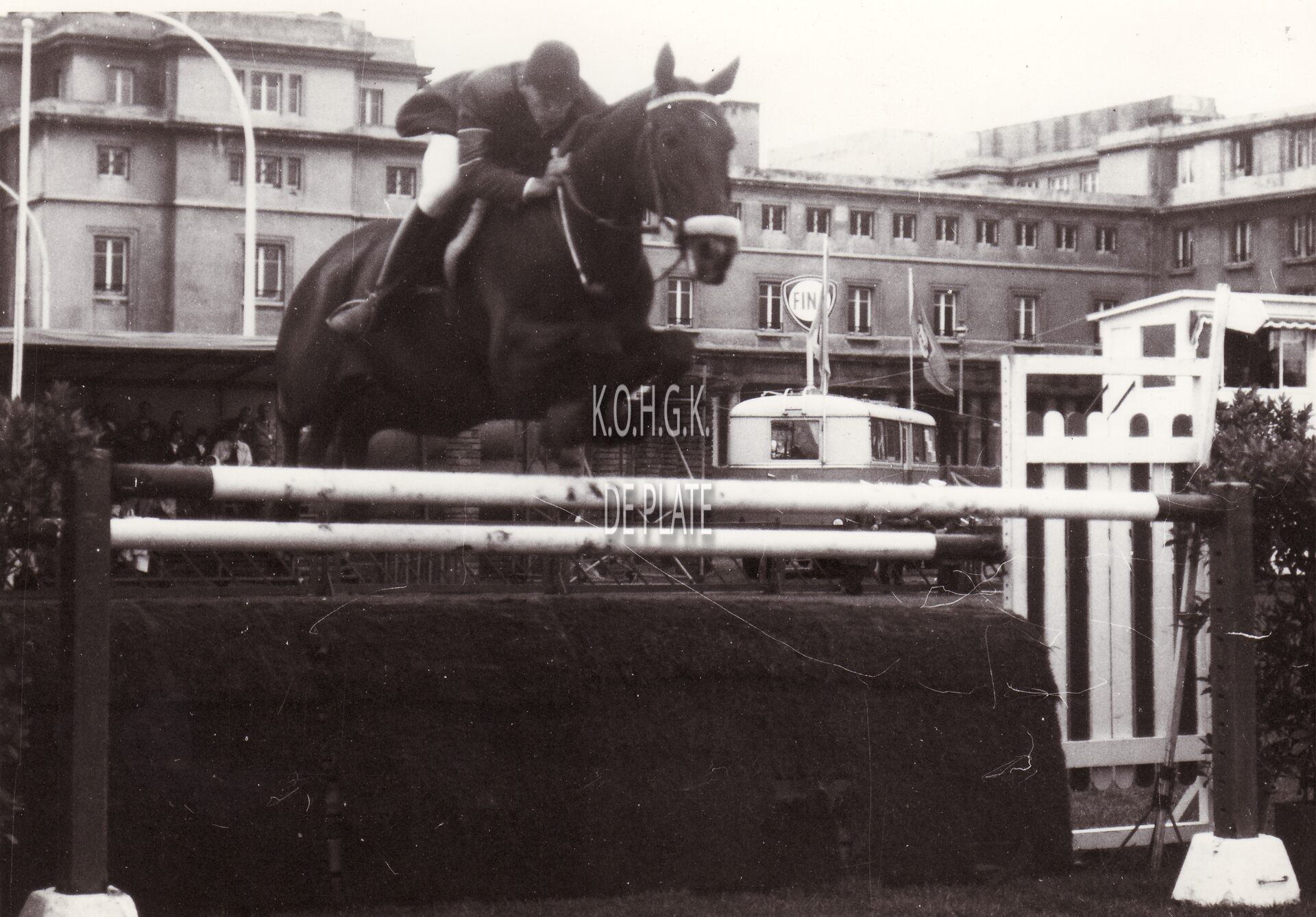 Formaat : 13 x 18 cm. - Ruiter J.M. GAM en paard nemen deel aan de jumpingwedstrijd