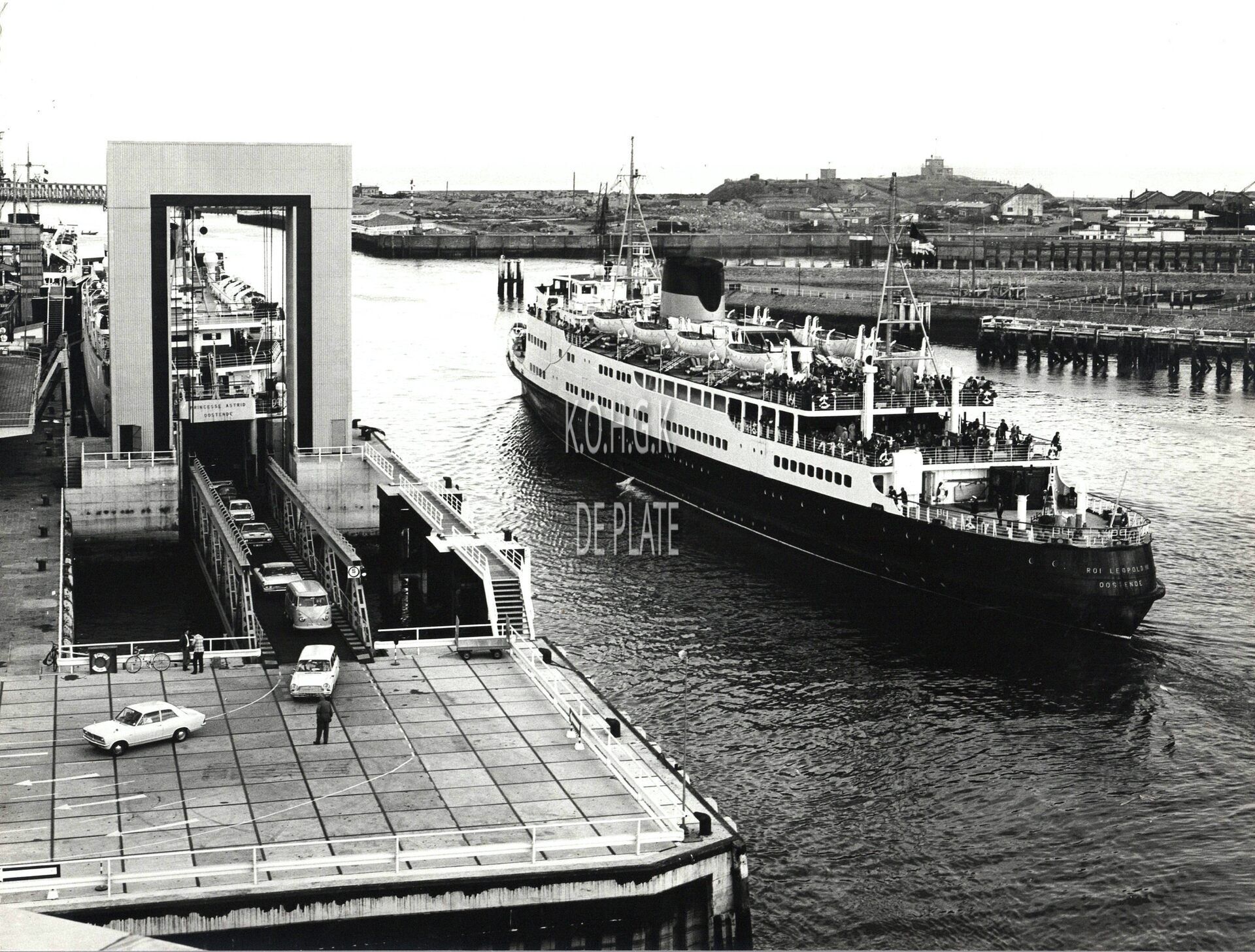 Formaat :  18 x 24 cm. De Roi Leopold III vertrekt naar Dover. Aan laadbrug 2, carferry Princesse Astrid.