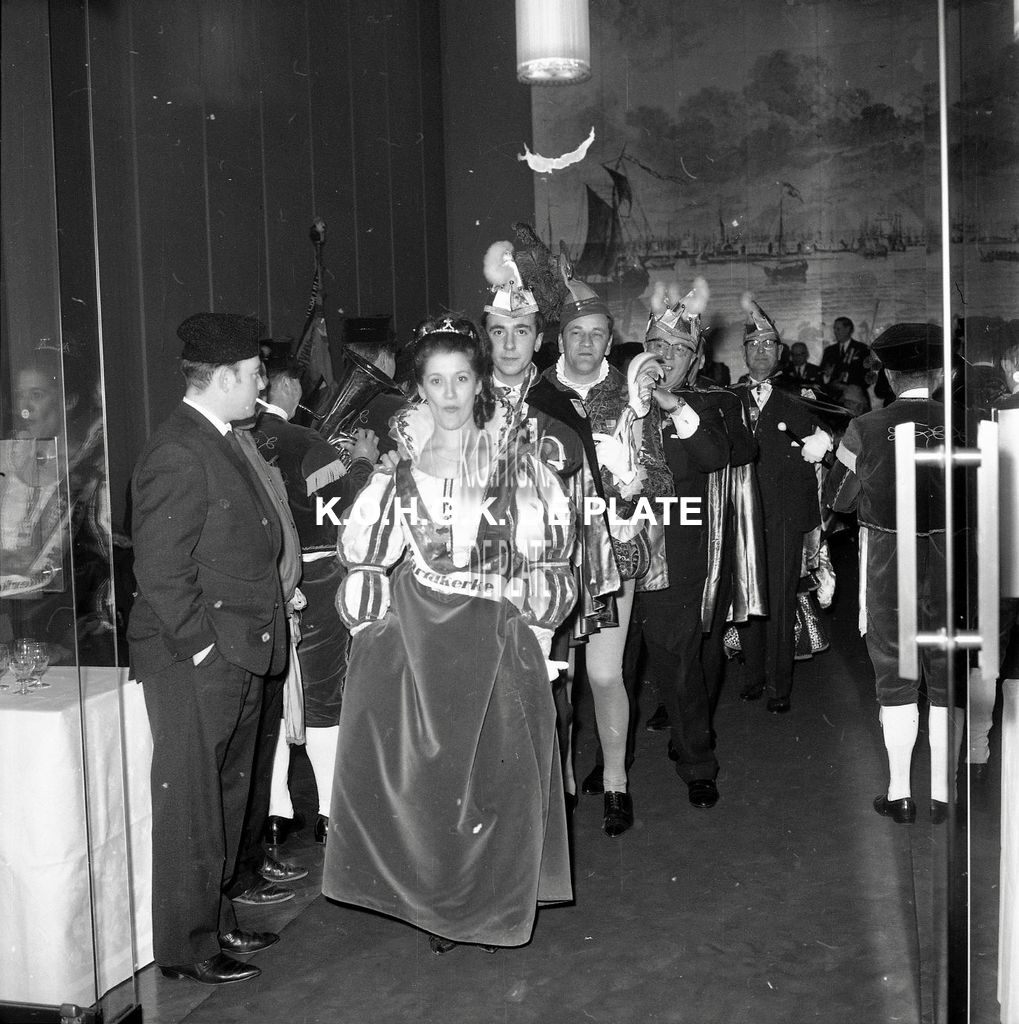 Negatief : 6 x 5,5 cm. - Ontvangst op het stadhuis. - Farandole op het stadhuis, met vooraan het prinsenpaar Albrecht en Isabella van Mariakerke 1965