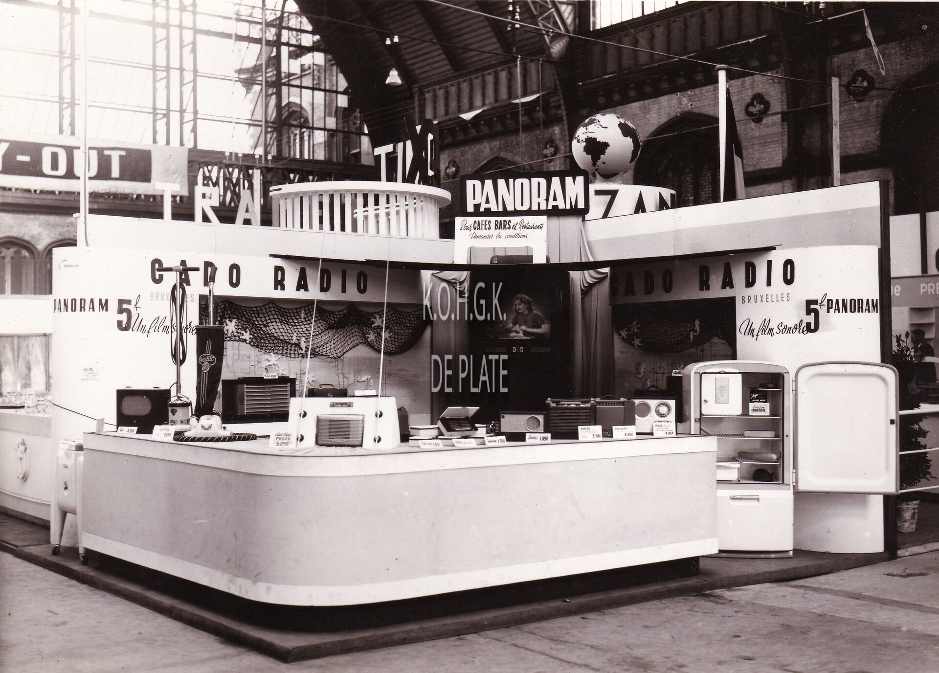Formaat : 13 x 18 cm. - Stand van radio Panoram op de handelsbeurs in de Alberthall van het oud station op het Ernest Feysplein.