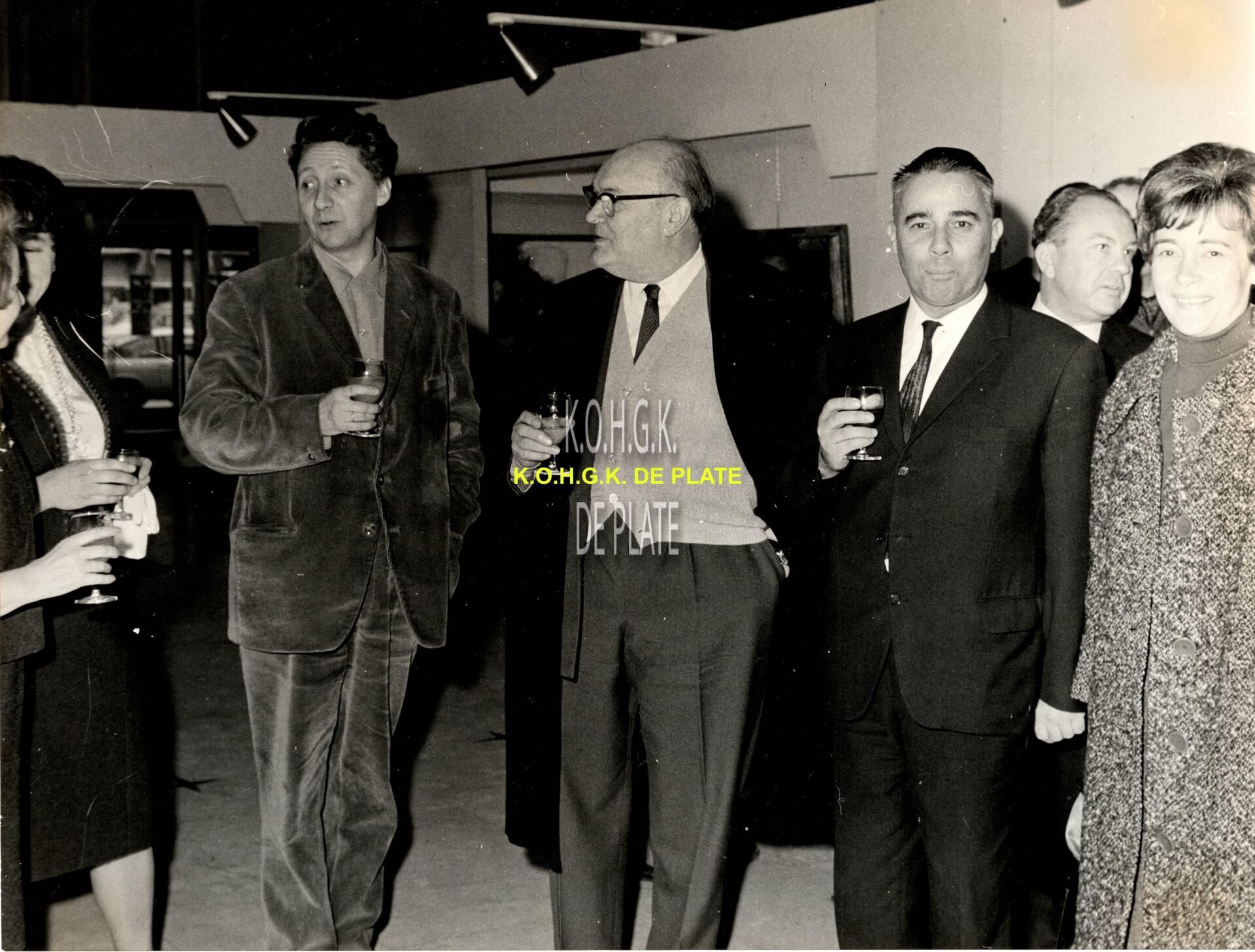 Formaat : 18 x 24 cm. - Ook Paul-Henri Spaak was aanwezig op de vernissage op 2 april 1966. We zien hem hier in het gezelschap van de kunstenaar (links) en schepen Raymond Miroir.