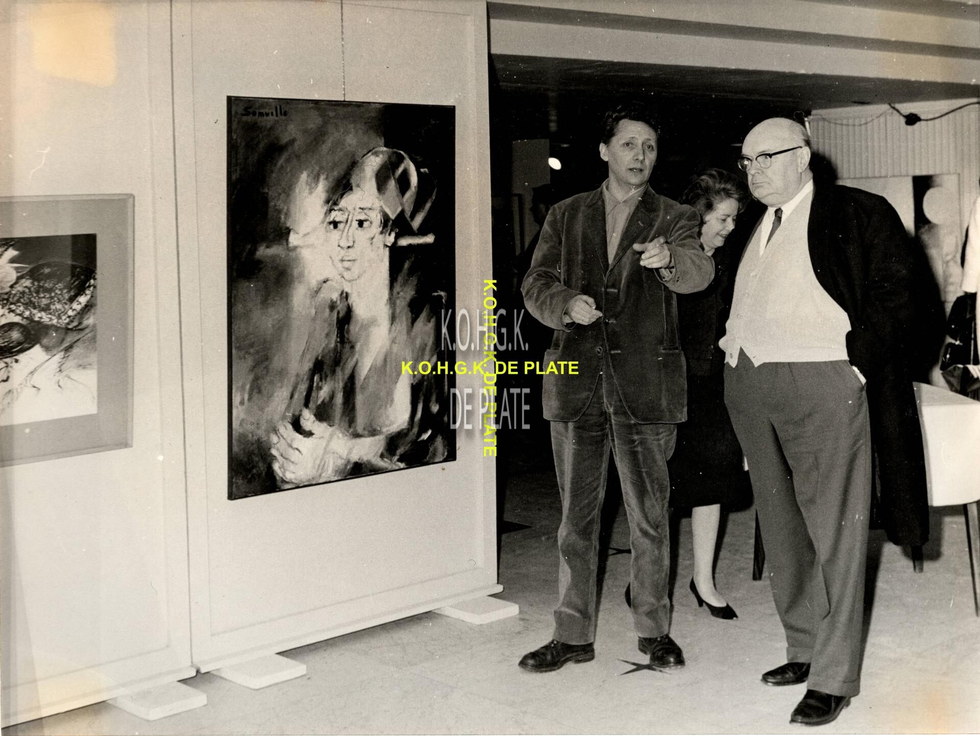 Formaat : 18 x 24 cm. - De kunstenaar in gesprek met Paul-Henri Spaak tijdens de vernissage in de inkomhall op 2 april 1966