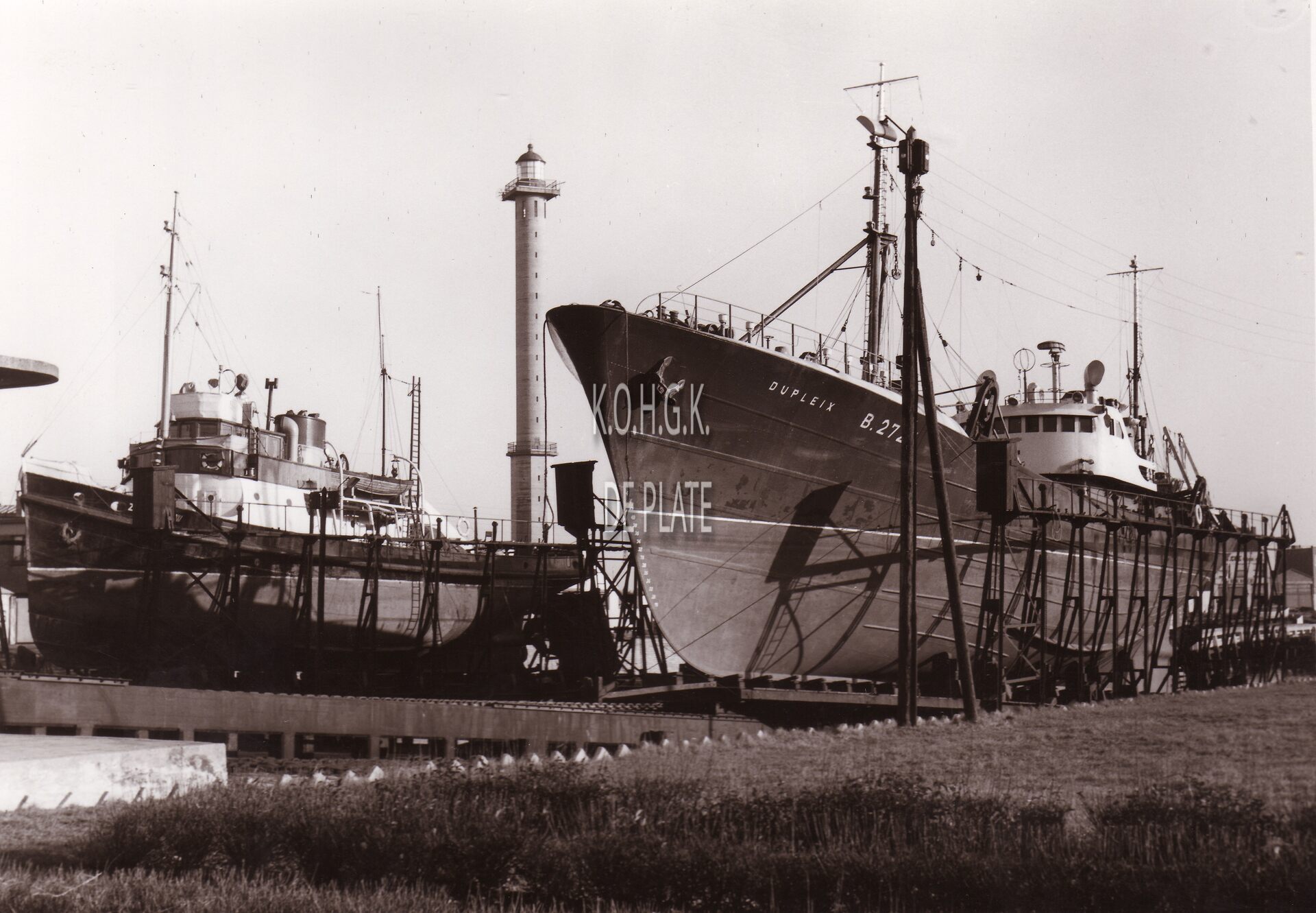 Formaat : 13 x 18 cm. - Twee vaartuigen op de slipway aan de Buskruitstraat.