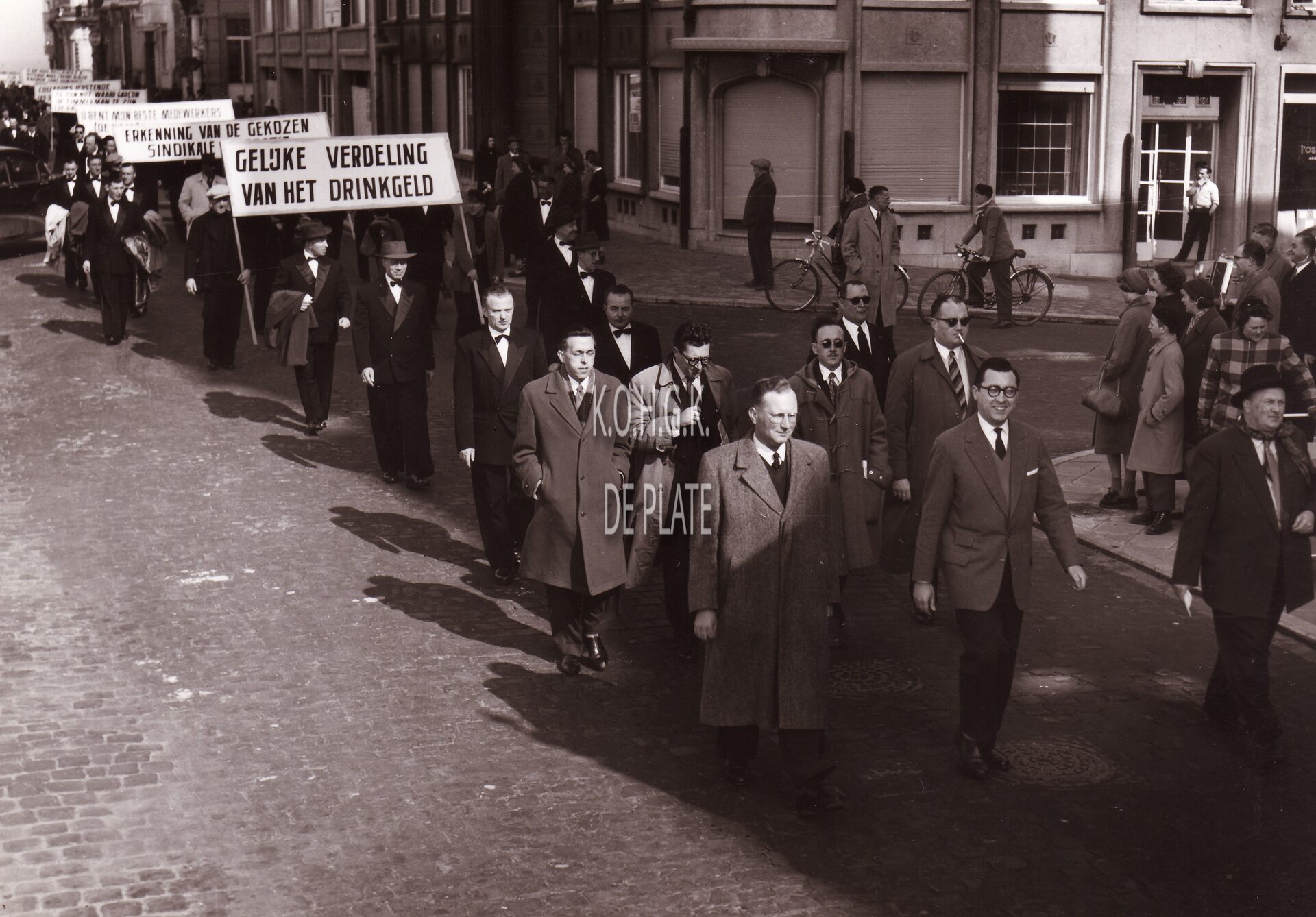 Formaat : 13 x 18cm. - Betoging van de stakende spelbedienden van het Casino- Kursaal. Hoek Albert I-Promenade met Vlaanderenstraat.