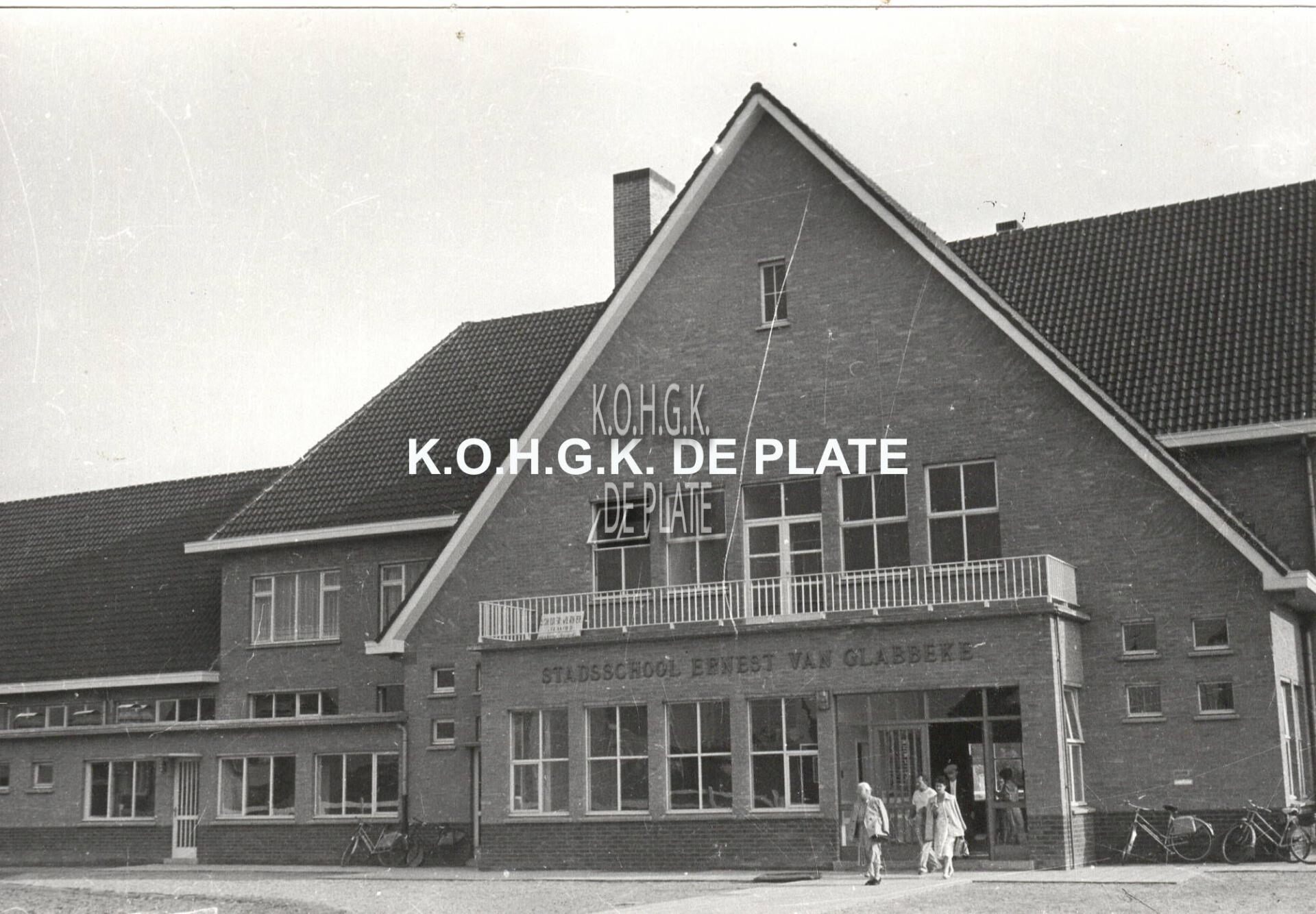 Formaat : 12 x 17 cm. - Gebouwd naar de plannen van stadsarchitect Arnold De Vos en officieel geopend door burgmeester Adolphe Van Glabbeke op 27 augustus 1955
