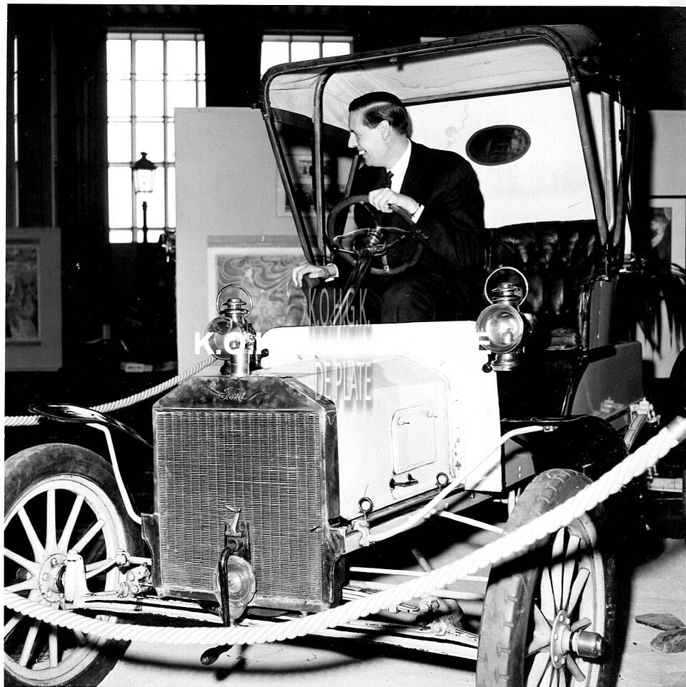 Formaat : 13 x 18 cm. - Burgemeester Jan Piers in een oldtimer tijdens de opening van de tentoonstelling.