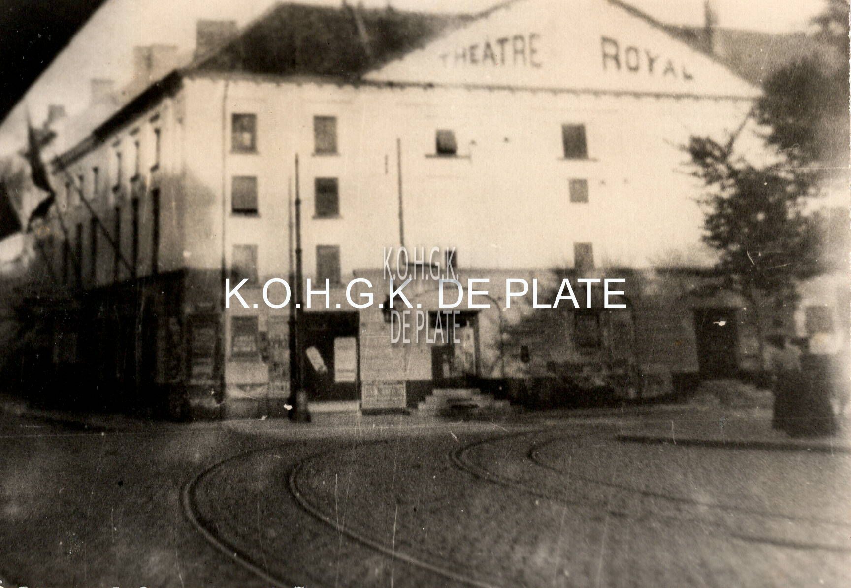 Formaat : 10 x 15 cm. - Théâtre Royal aan het komedieplein (nu Marie-Joseplein) met links de Weststraat (nu Adolf Buylstraat). Tramsporen op de voorgrond