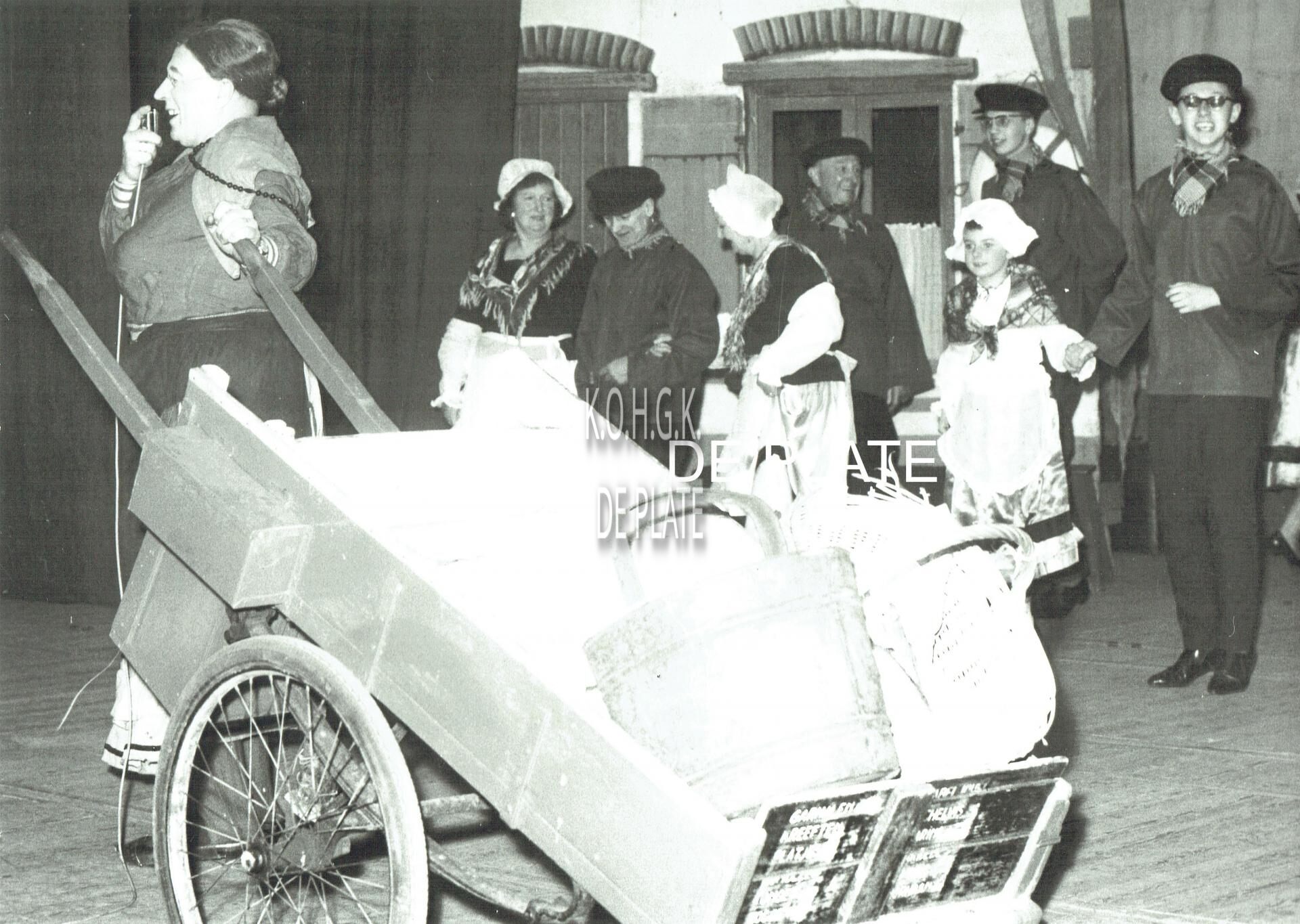 Vergroting. - Formaat : 30 x 40 cm. - Een optreden van Jeroom Depoorter (?) de Bredense komiek met de folkloregroep "Het Loze Vissertje"