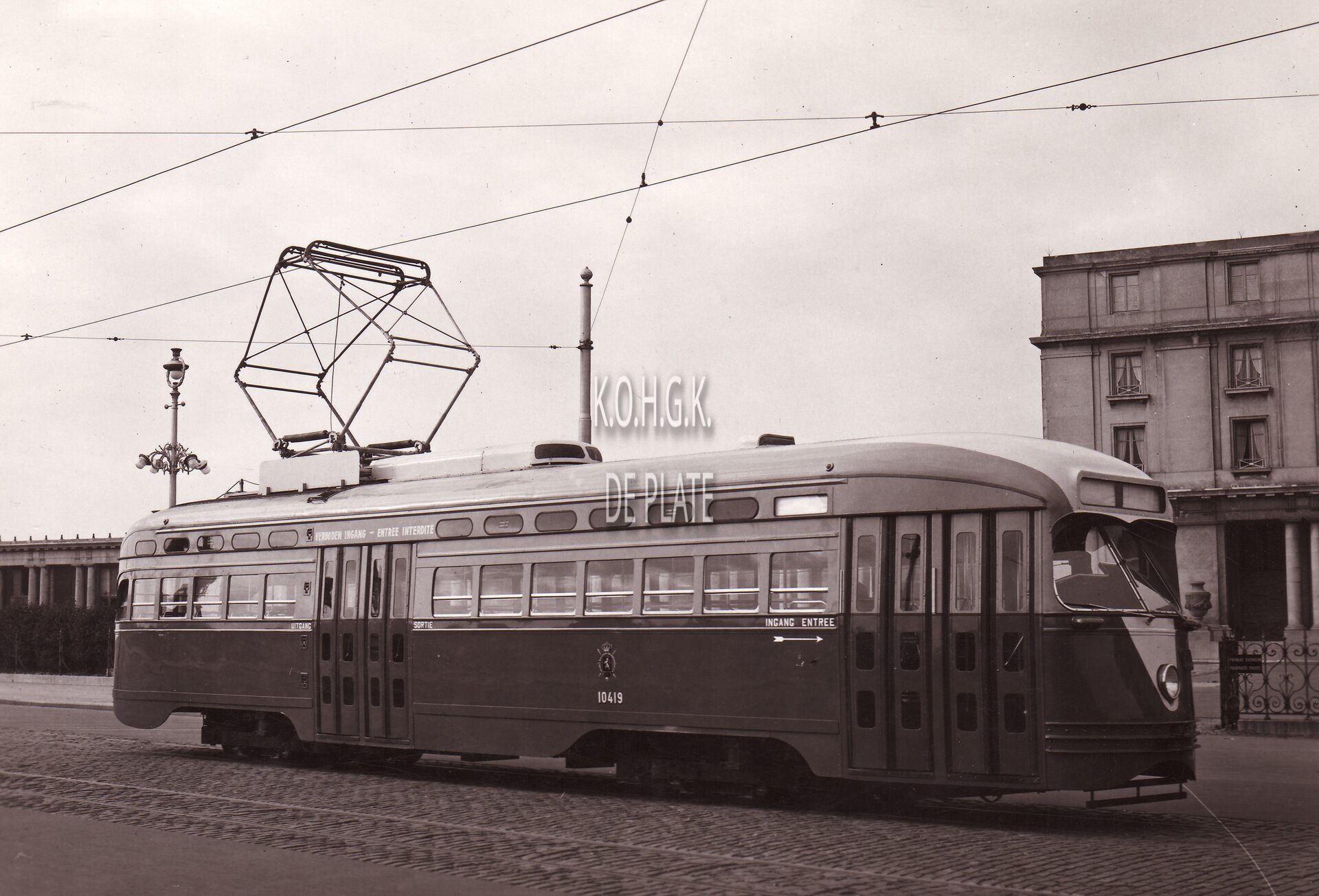 Formaat : 13 x 18 cm. - Een nieuw type tram, tijdens een proefrit, voor het Thermae Palace op de Koningin Astridlaan (nog kasseien). Amerikaanse tram ingevoerd door ACEC - La Brugeoise & Nivelles. Bij wijze van proef reed deze tram tijdens het toeristisch seizoen op de Oostendse stadslijnen en lijn 2 (Oostende - De Panne)