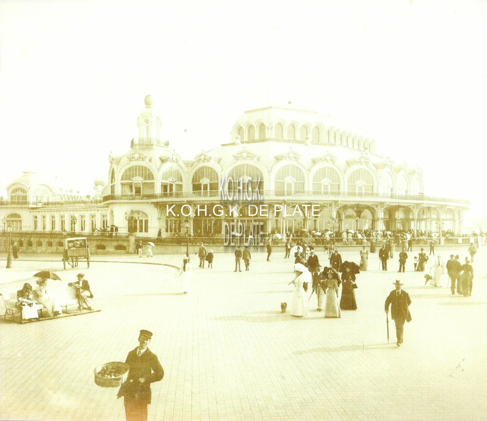 Afdruk. - Formaat : 19 x 22 cm. - Het tweede Kursaal werd gebouwd tussen 1875 en 1878 naar de plannen van de Brusselse architect Naert. Het werd ingehuldigd op 22 juni, aanwezigheid van Z.M. Koning Keopld II.