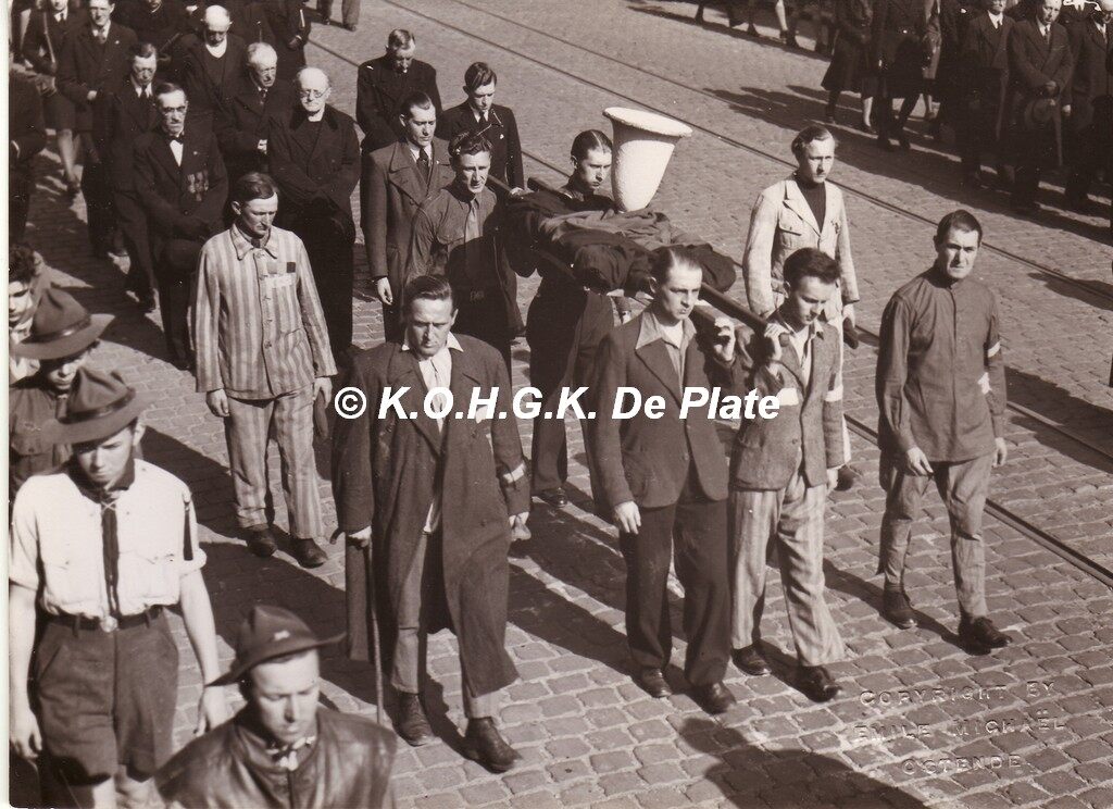 Omschrijving Foto 18 x 13. Herbegraven van een oorlogsslachtoffer Trefwoorden FOTO'S KRIJGSGEVANGENEN BEGRAFENISSEN SCOUTS TWEEDE WERELDOORLOG Plaatskenmerk Fotoarchief archiefdoos 12 tweede wereldoorlog Inventarisnummers 2015/0480 Herkomst Van De Casteele Etienne - Vlamertinge Vervaardiger Photo Michaël Print