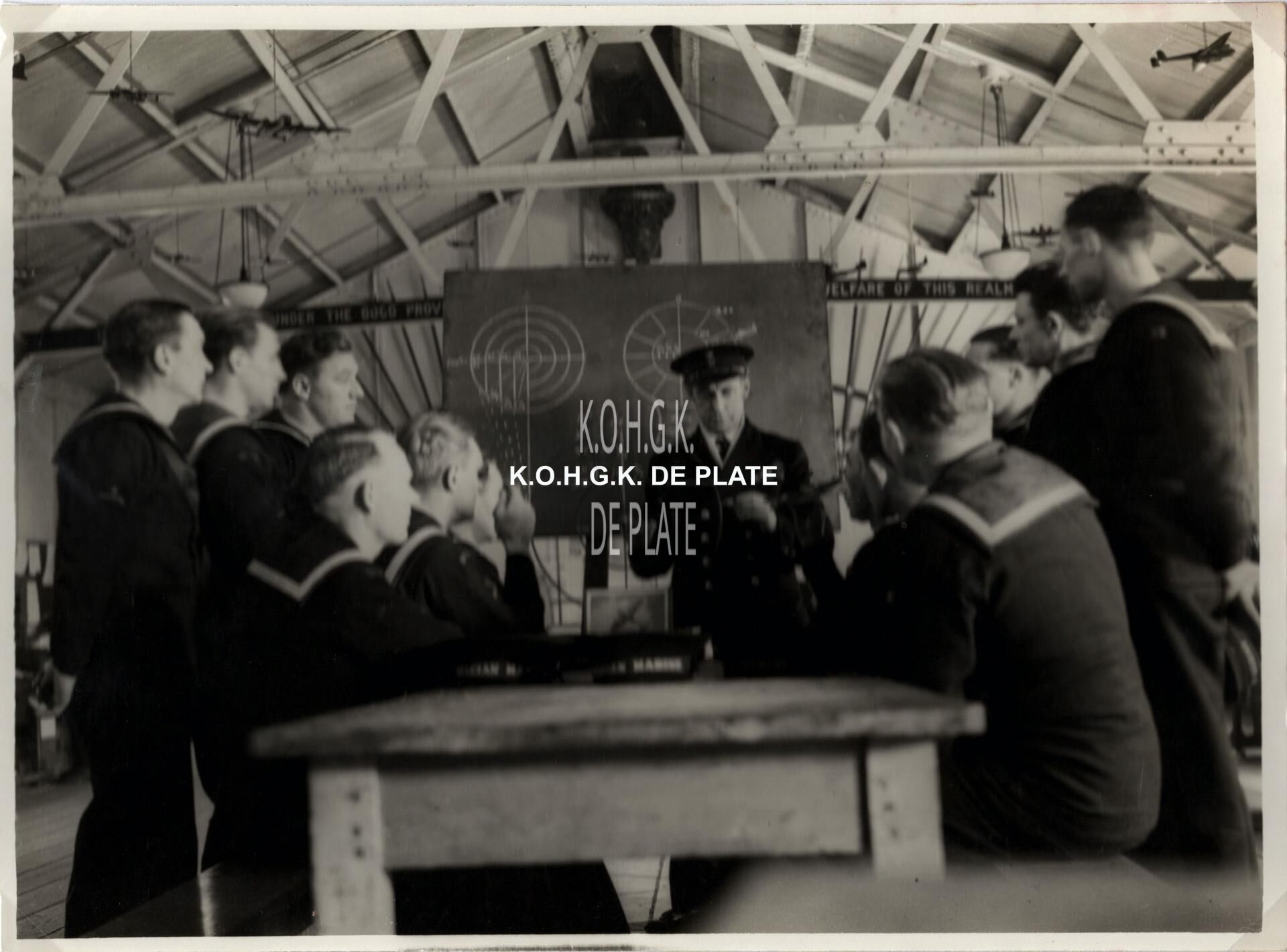 Formaat : 14,5 x 20 cm. - De mannen leren hoe ze met de wapens moeten omgaan op de met wapens uitgeruste koopvaardijschepen. De opleiding werd gegeven in het Belgian D.E.M.S. training centre HMS "Eaglet" te Liverpool.