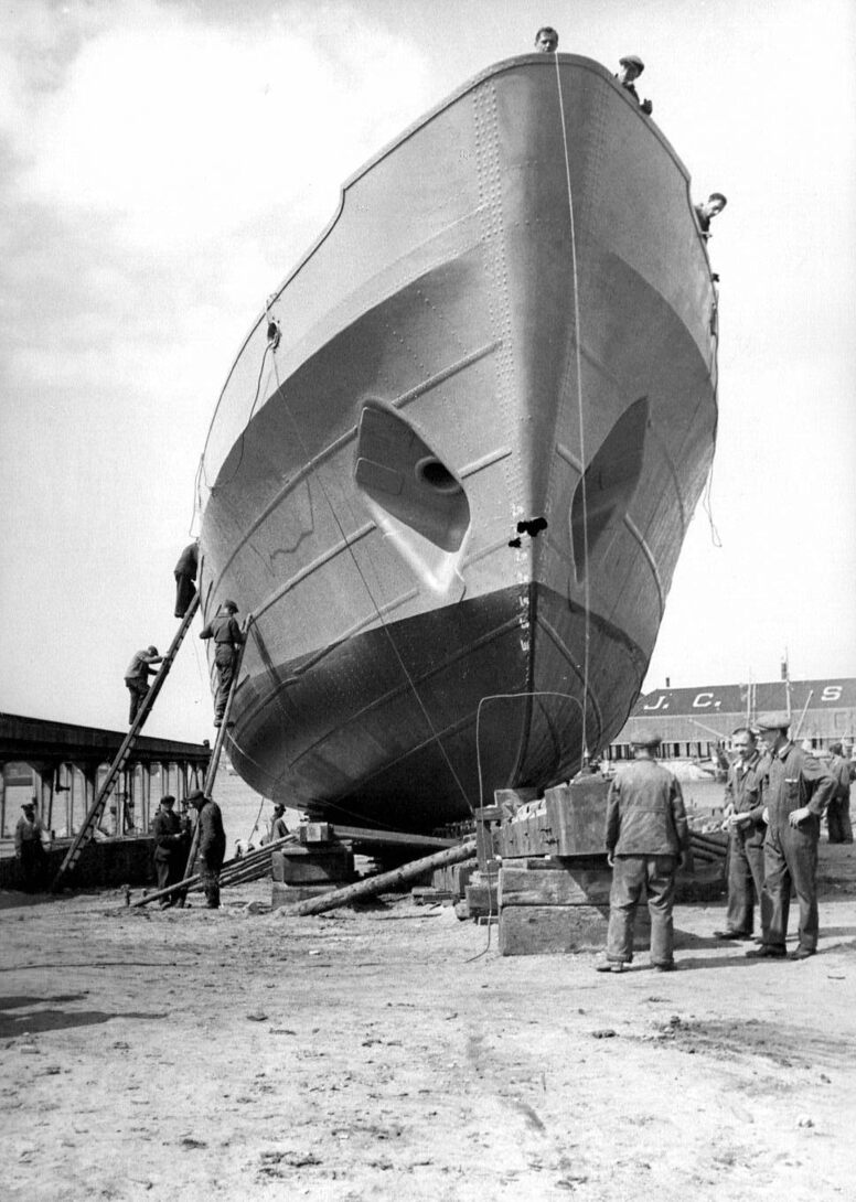 Stapelloop van een "Vorpostenboot" voor de Kriegsmarine. - (coll. Bundesarchiv)