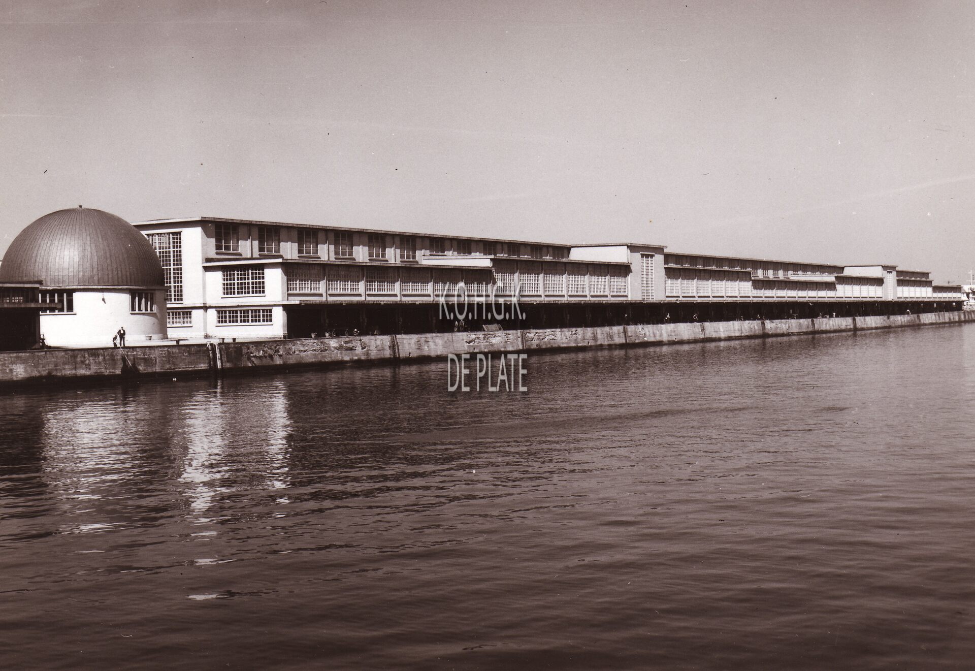 Formaat : 13 x 18 cm. - Zicht op het Visserijdok. Het ronde gebouw is het haringmijn (of sprotmijn) en de Vismijn aan de Vismijnlaan.