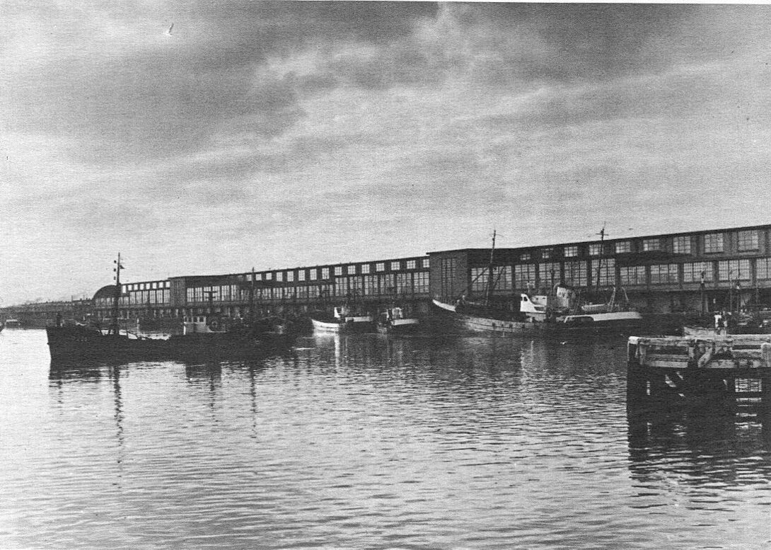 Het Visserijdok en vissersvaartuigen aangemeerd langs de Vismijn. - Map 023 A-50