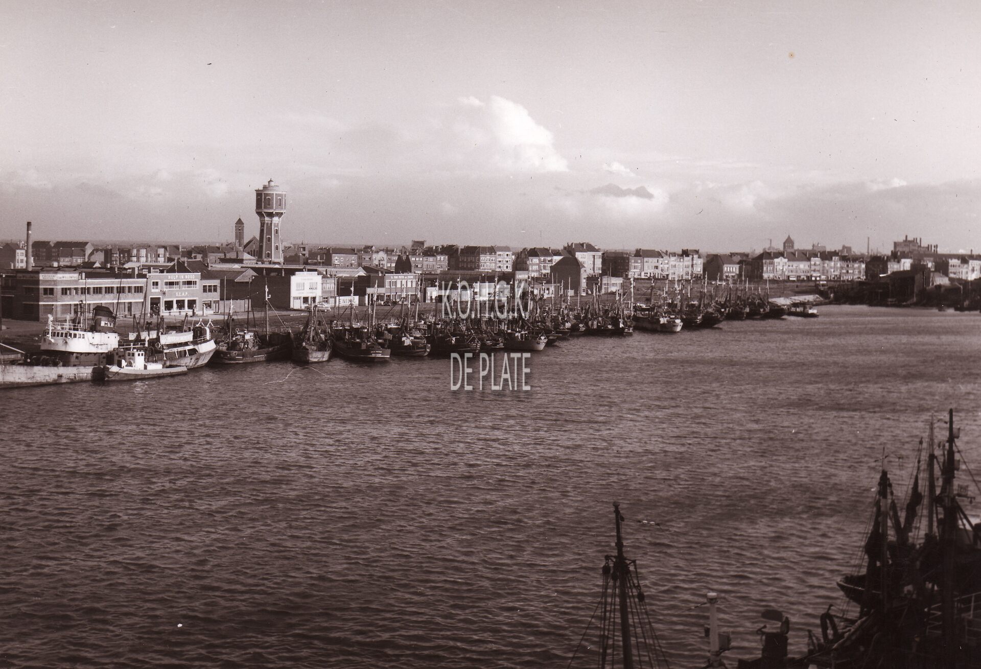 Formaat : 13 x 18 cm. - Panoramisch zicht op het Visserijdok en de Hendrik Baelskaai v