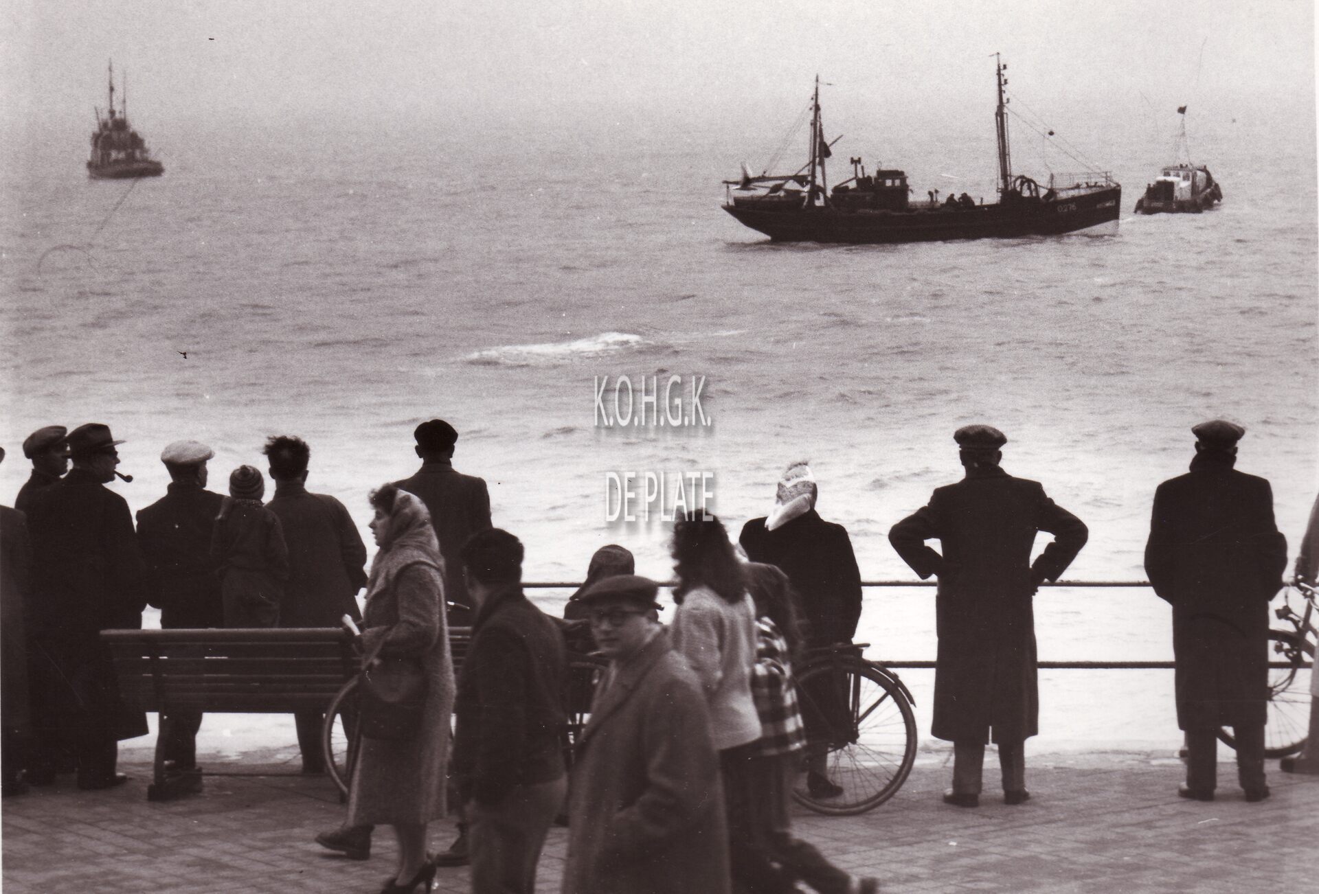 Formaat : 13 x 18 cm. - Lostrekken van de gestrande O.276 Lucienne-Christiane onder ruime belangstelling Het vaartuig was in een dikke mist gestrand op een golfbreker