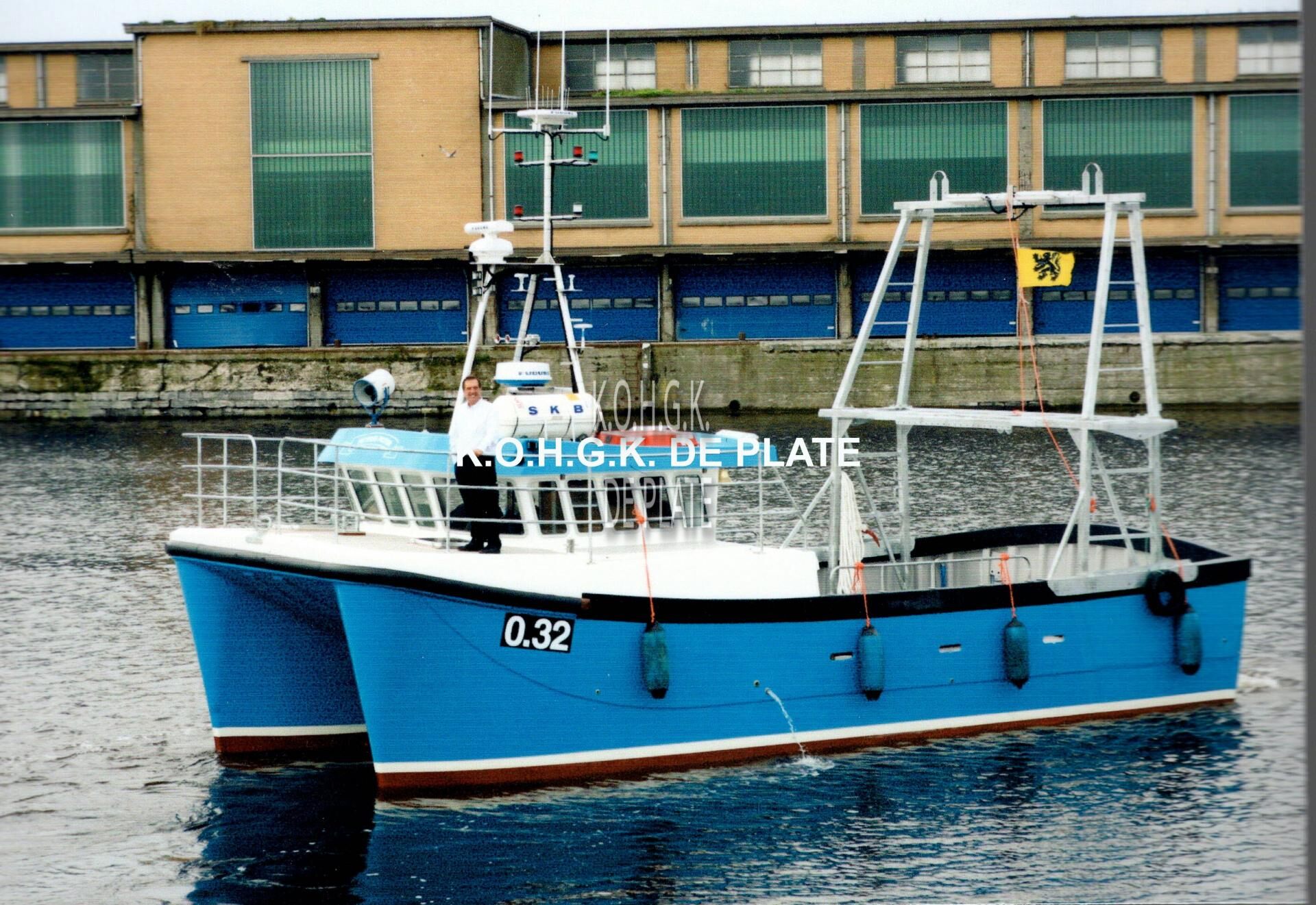 Formaat : 9.5 x 14 cm. - Met vooraan, reder Willy Versluys. Op de achtergrond, de Vismijn. O.32 "Petrus Pictor". Polyester vissersvaartuig gebouwd in 2007 op de scheepswerf Gemini Catamaran Workboats LTD voor Ishtar Rederij BVBA. Reder : Willy Versluys. Noël Dujardein, peter en Viviane Coudeveille, meter. Bruto tonnemaat : 21 en netto tonnemaat : 6. Lengte : 11,78 m. en breedte : 5,15 m. Voorzien van een motor Daewoo met een vermogen van 221 kW. De visuitrusting van het vaartuig : met plankennet/bordernet voor de passieve visserij. Vanaf 2010 als N.32 "Jolly Jumper" en uitgerust voor de warrelnettenvisserij. In 2014 werd dit schip voor de laatste maal opgenomen in de Officiële lijst der Belgische vissersvaartuigen.