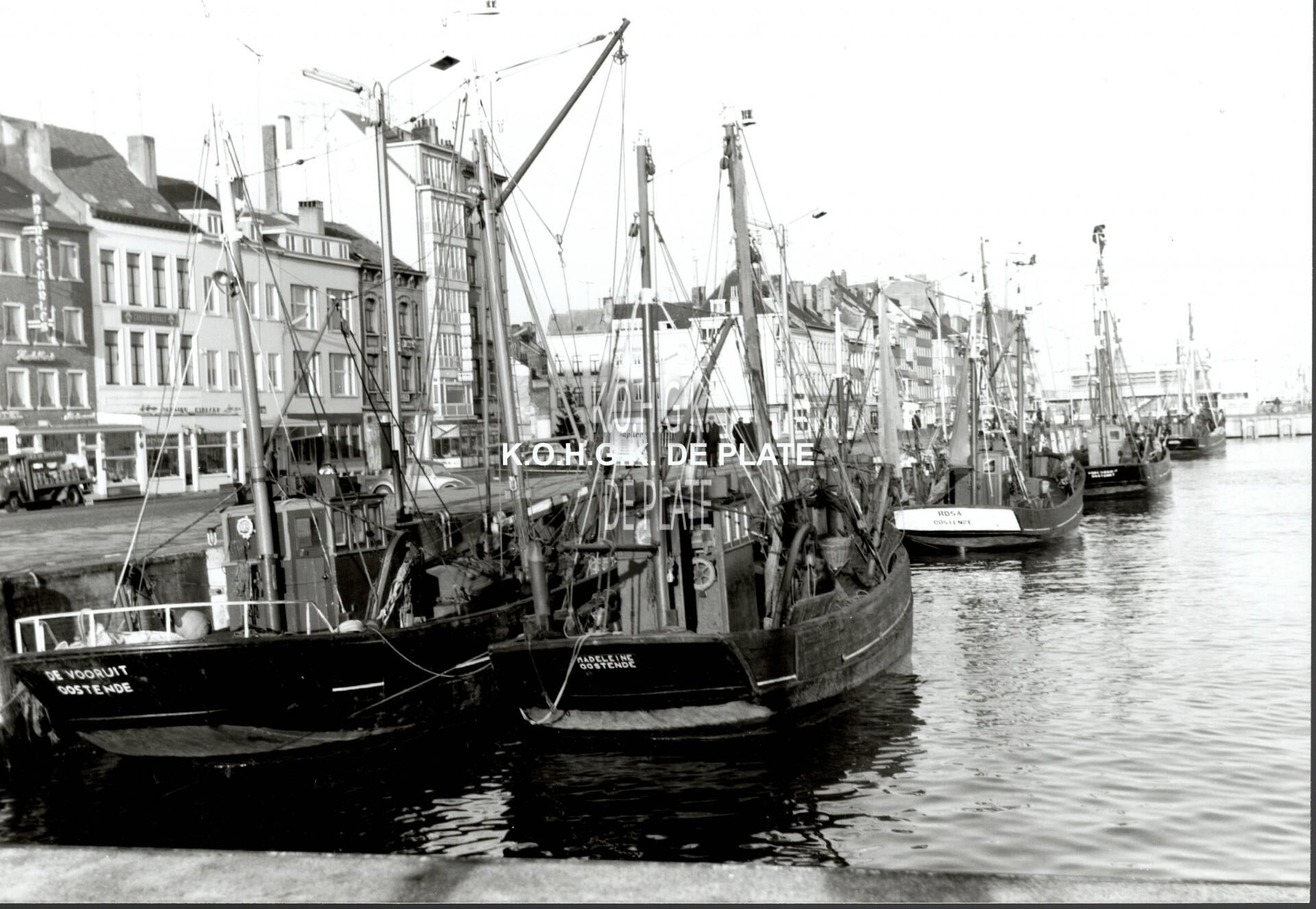 Foormaat : 13 x 18 cm. - De O.70 "De Vooruit", O.4 "Madeleine" en O.58 "Rosa" in het Montgomerydok. In de achtergrond de Visserskaai