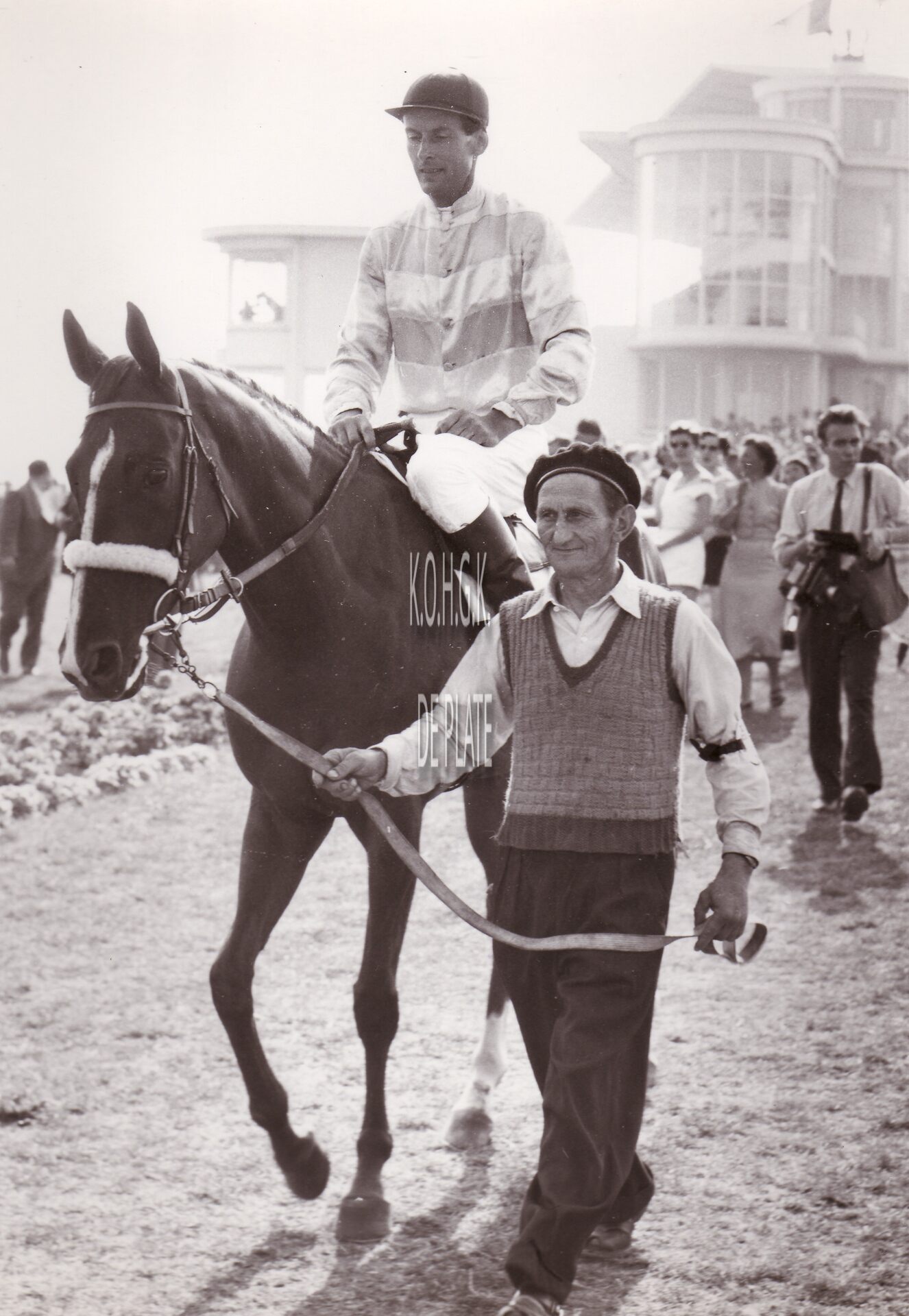 Formaat : 18 x 13 cm. - Een renpaard met jockey op de Wellingtonrenbaan.