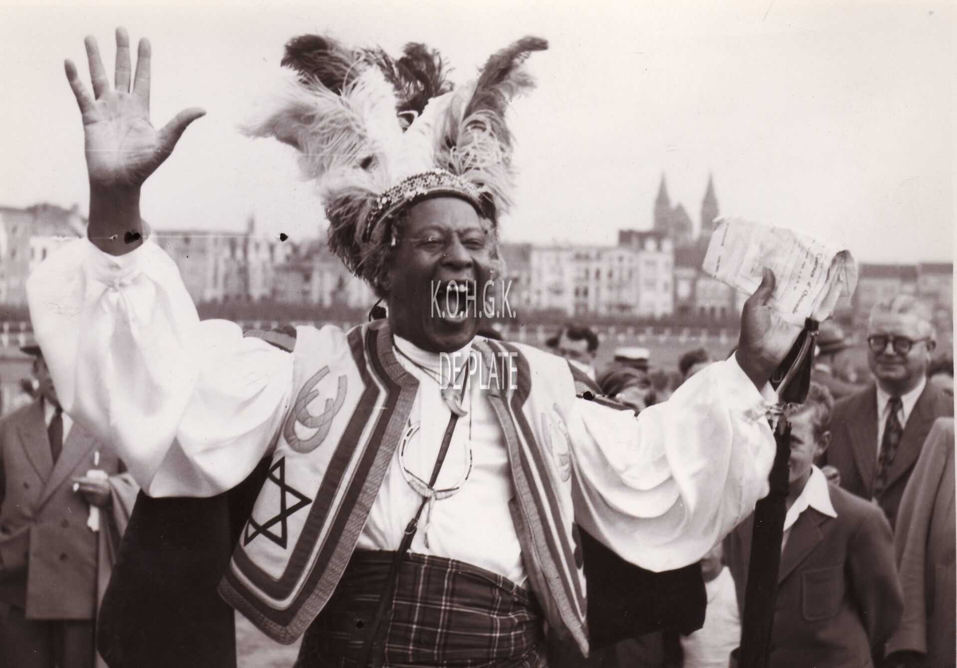 "Prince Monolulu, een stukje folklore uit de Engelse turfwereld. Dik onder de pluimen kwam de "prins" soms naar Wellington om er zijn tips aan goedgelovige turfisten door te spelen"