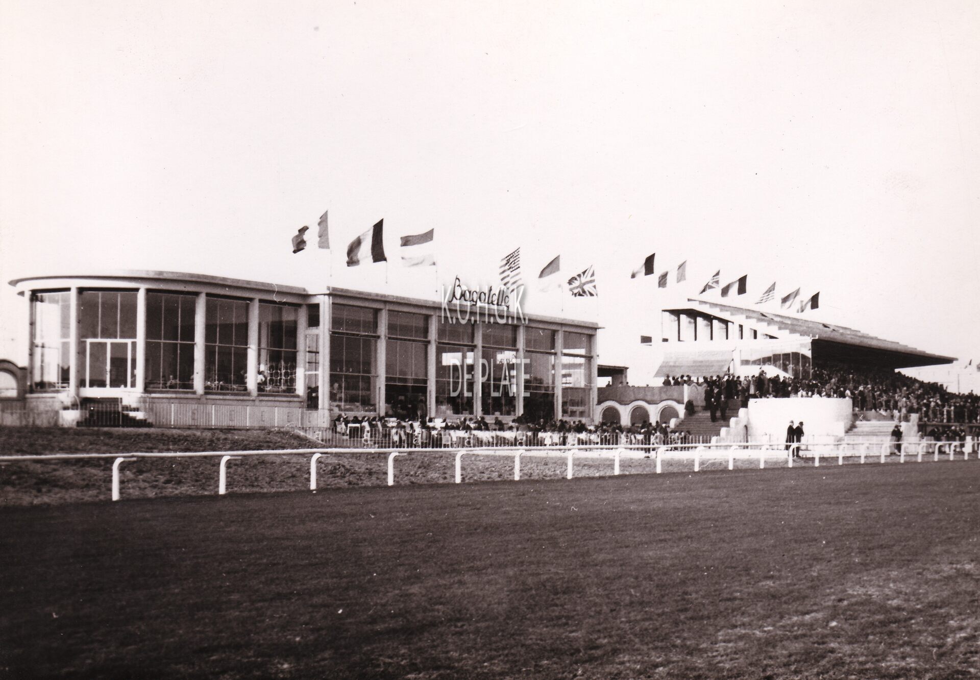 Formaat : 13 x 18 cm. - De Bagatelle en de grote tribune van de Wellingtonrenbaan.