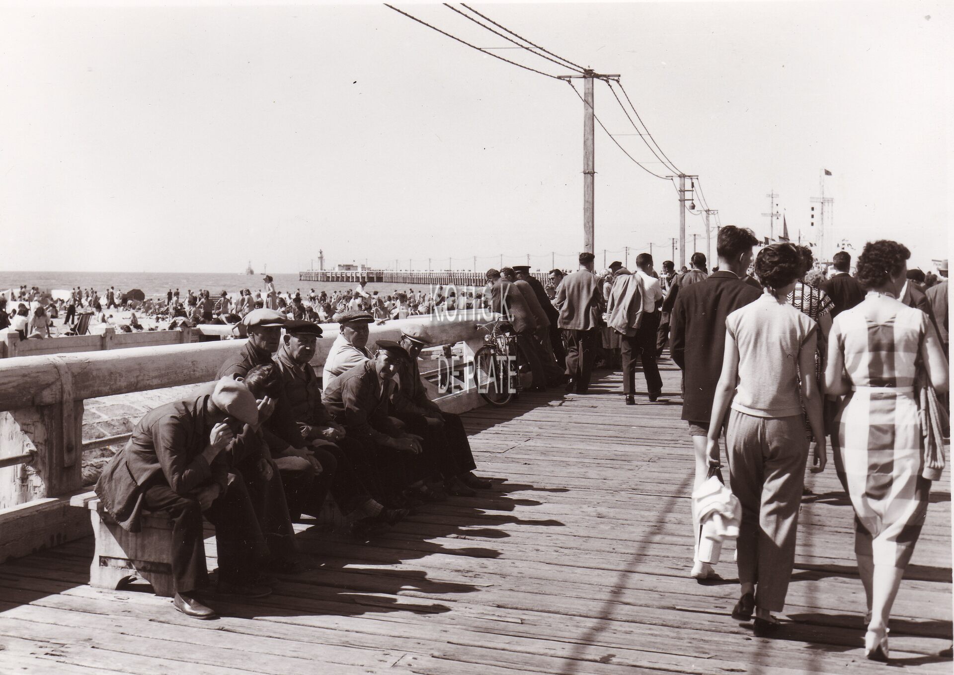 Formaat : 13 x 18 cm . - Veel wandelaars o^het Weststaketsel en zonnekloppers op het klein strand