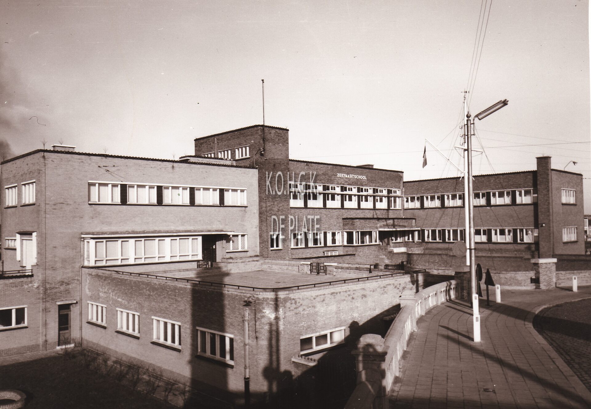 Formaat : 13 x 18 cm. - De Zeevaartschool aan de Slijkensesteenweg met de aangebouwde vleugel.