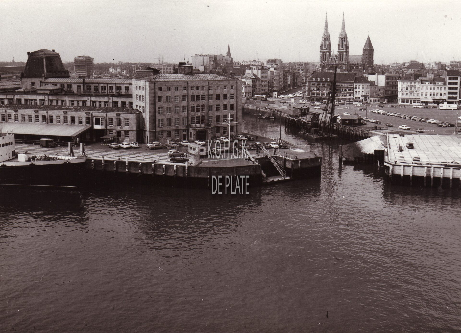 Formaat : 13 x18 cm. - Rechts is een drijvende bok aan het werk in het gedempt dok (thans parking). Vooraan aanlegplaats overzetboot.
