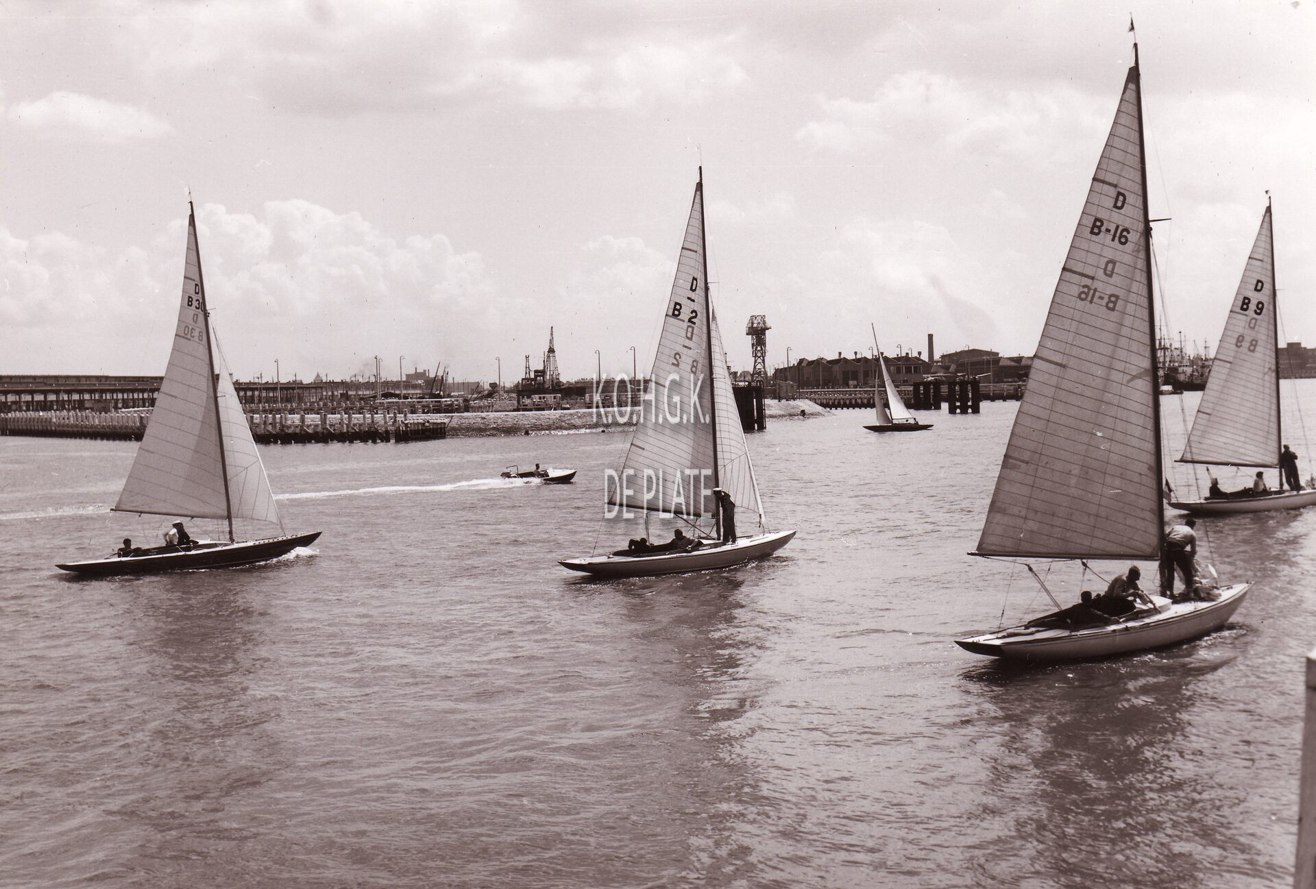 Formaat : 13 x 18 cm. - Deelnemers aan een zeilwedstrijd keren terug naar de haven