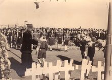 Formaat :Β 18 x 13 cm. - Herdenking van de gesneuvelde politieke gevangenen op de begraafplaats aan de Stuiverstraat. Ingericht door de Nationale Federatie der Politieke Gevangenen en Gelijkgestelden. Sectie Ernest Feys.Β Zie ook inventarisnummer 2013/1461.