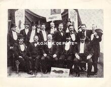 (1) Deridder FrΓ©deric - (2) Seeuwen Henri - (3) Ditte Albert - (4) Brouwet LΓ©on - (5) Van Craeynest Daniel - (6) Pede August - (7) Bulcke EmileΒ - (8) Daveluy Georges - (9)Β Bulcke Georges - (10) Mathieu Emile - (11) Mertian Victor - (12) Quinet Edgard - (13 Pleyn Firmin - (14) Cnudde Gustave - (15) Rinskopf LΓ©on - (16) Cambier Arthur. De afwezige op de foto was James Ensor